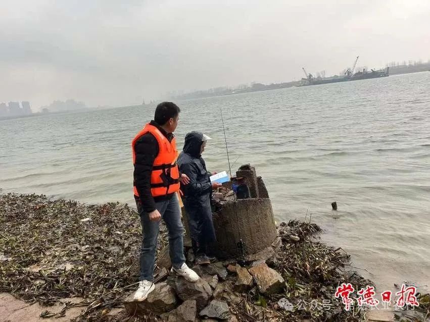 当天下午,天空飘着毛毛细雨,执法人员从市渔政站趸船码头登船,兵分两组(一组前往桃源县、桃花源沅江水域,二组前往汉寿县沅水、西洞庭湖水域)执行任务。一组执法人员在武陵区丹洲乡河段发现有锚鱼者,准备前往说服教育,不等执法人员上岸,锚鱼者就逃之夭夭。在另一处河岸边,执法人员发现有垂钓者搭建的雨棚,但未发现垂钓者。在大西门船码头,执法人员向群众发放禁捕宣传册,宣传禁捕知识,发动群众及时举报非法捕捞者。