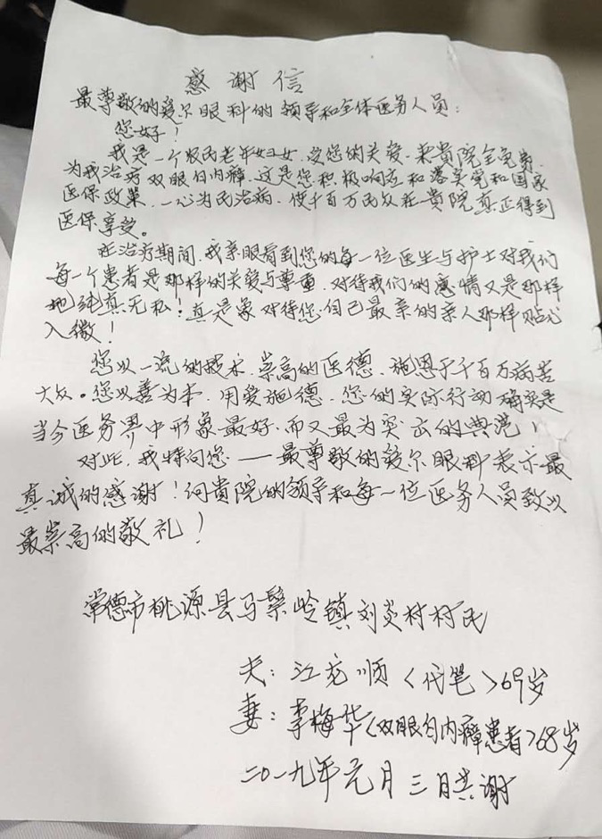 两位老人曾因家境的贫寒选择放弃手术,正在绝望之际遇到了常德爱尔眼科医院的工作人员,在了解了两位老人的情况之后立即为她们申请了“善行湖南—万人眼健康公益行”全免手术救助,享受所有费用全免,最大程度减轻她们的经济压力,这让她们重新燃起了希望