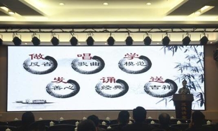 此次道德讲堂共分为“做反省、唱歌曲、学模范、发善心、诵经典、送吉祥”六个环节。在轻柔的音乐声中,大家闭目反省,洗涤内心;唱歌曲环节,全体起立高声歌唱《英雄赞歌》,在歌声中感受“地陷进去独身挡,天塌下来只手擎”的壮志豪情;在学模范环节,播放了方志敏同志英雄事迹纪录片,大家深受感动,纷纷表示要学习方志敏精神,学习革命先烈对党忠诚、坚定信念,不忘初心、牢记使命的精神;发善心环节,全体干部职工郑重承诺要:做一个对党忠诚、信念坚定的人;做一个敢于创造、善于创造的人;做一个甘于清贫、大公无私的人;做一个无私奉献、忘我奋斗的人;在随后的诵经典环节,大家齐声诵读陈毅元帅的作品《梅岭三章之三》,通过朗诵诗句感受共产党人的伟大理想和革命先辈舍生取义的英雄气概。