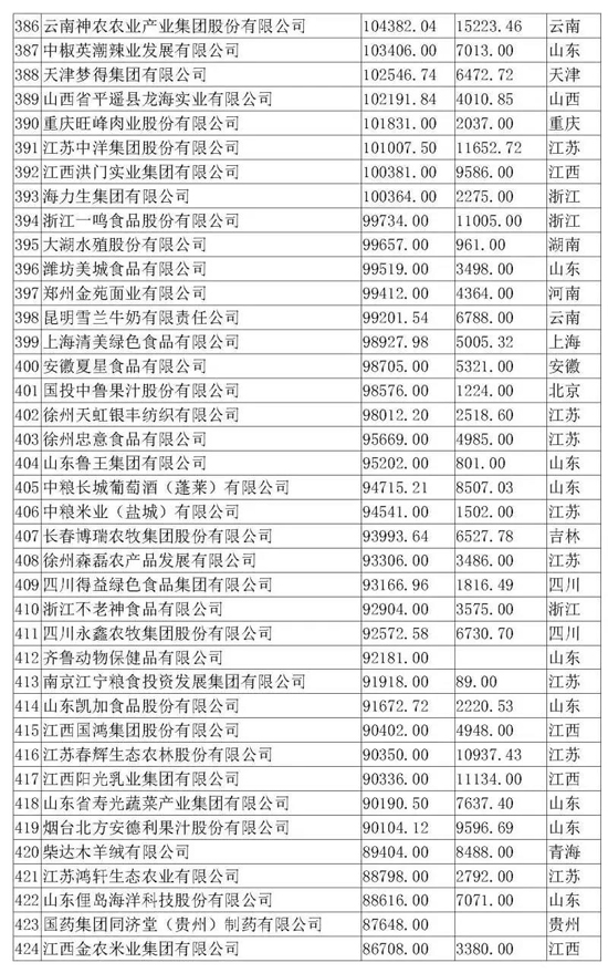 《2019农业产业化龙头企业500强排行榜》正式公布