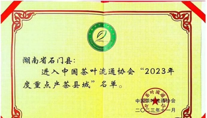 石门获“2023年度重点产茶县域”殊誉