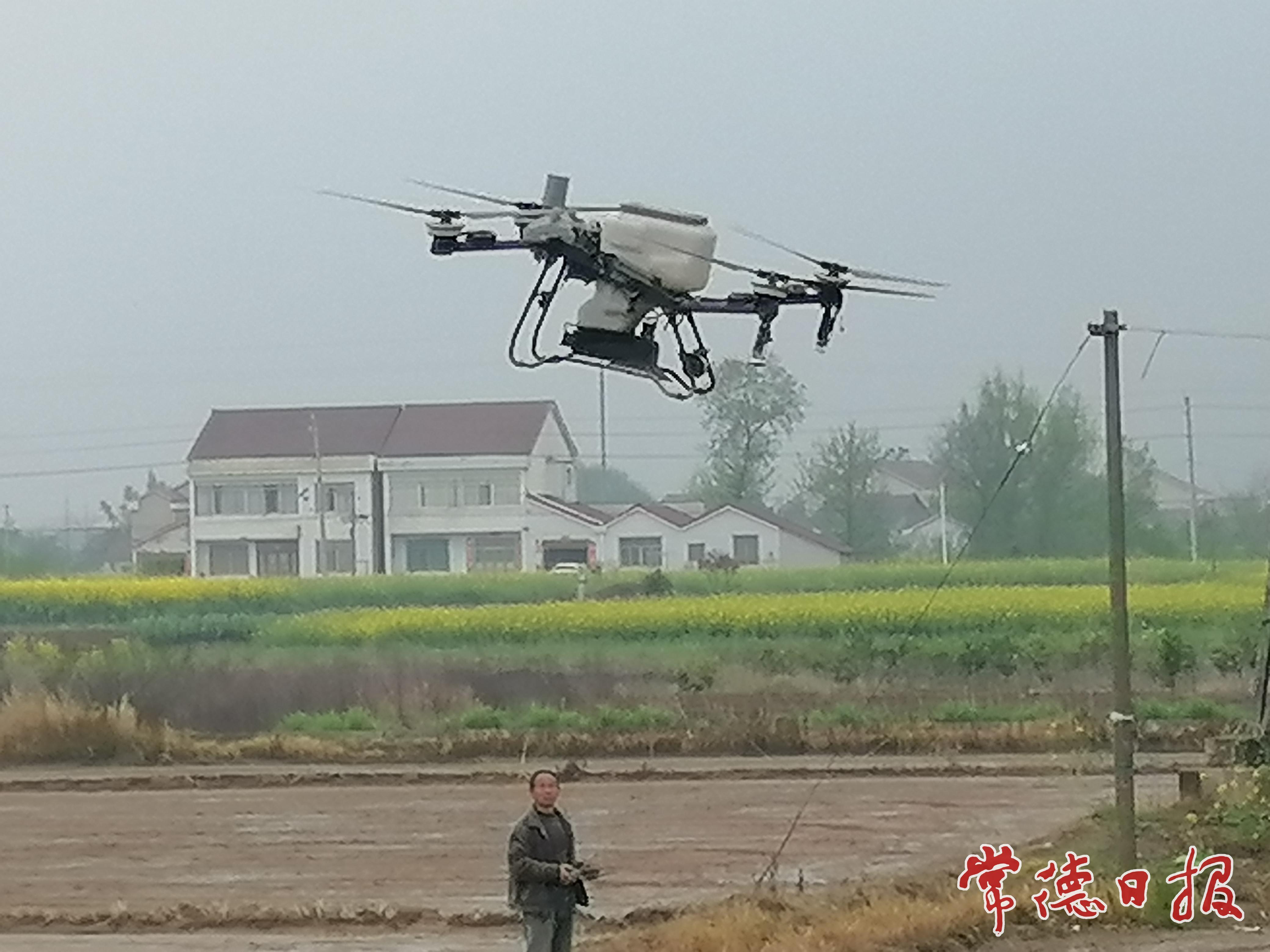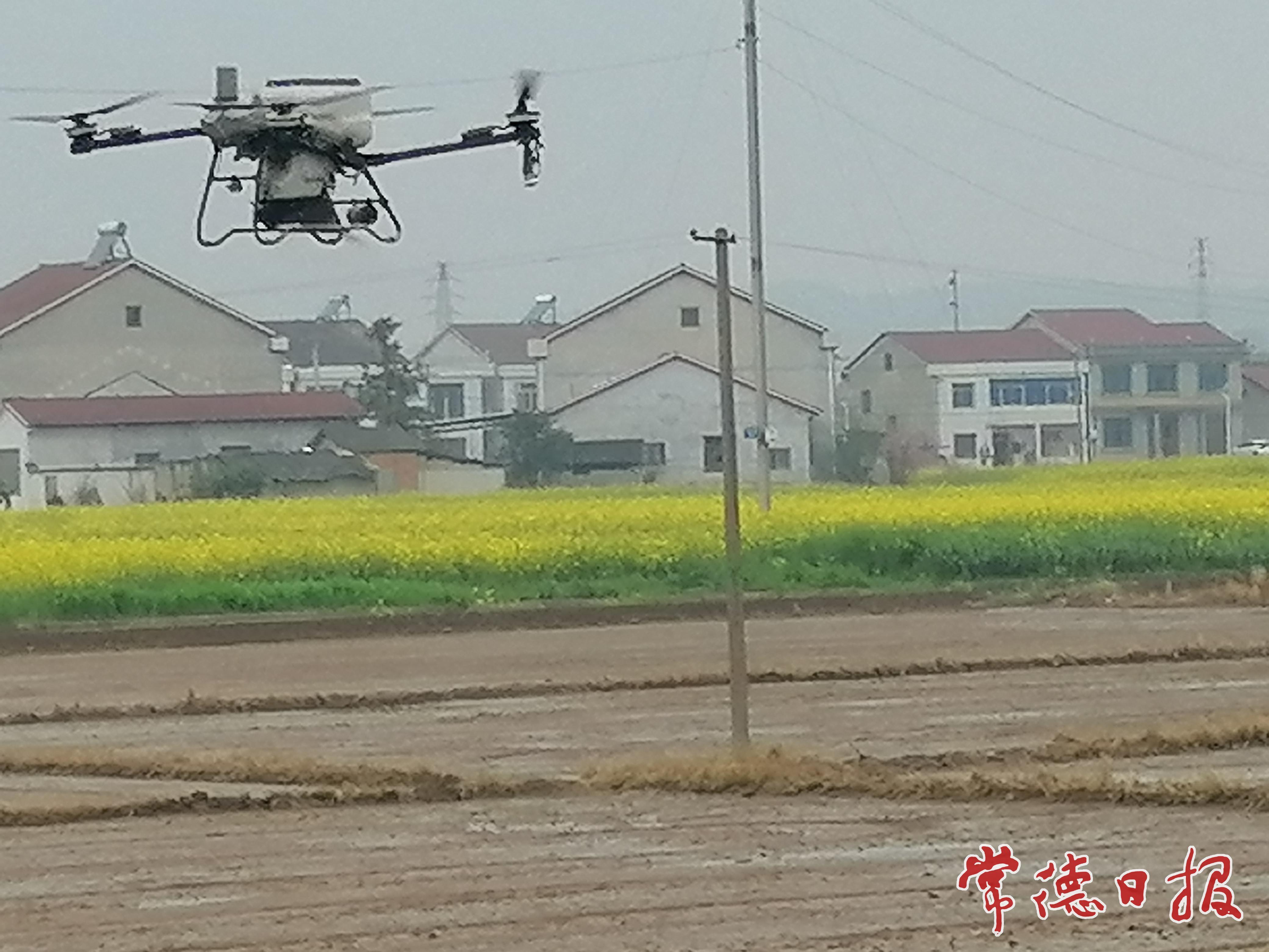 3月27日,在彭市社区七组,一块块平整的农田,伴随着阵阵轰鸣,一架无人机在飞手李传云的操控下,按照预设线路灵活穿梭在农田上空。种子被均匀地播撒而出,精准覆盖每一寸田土,昔日繁重的播种任务此刻轻松完成,别提他有多高兴。