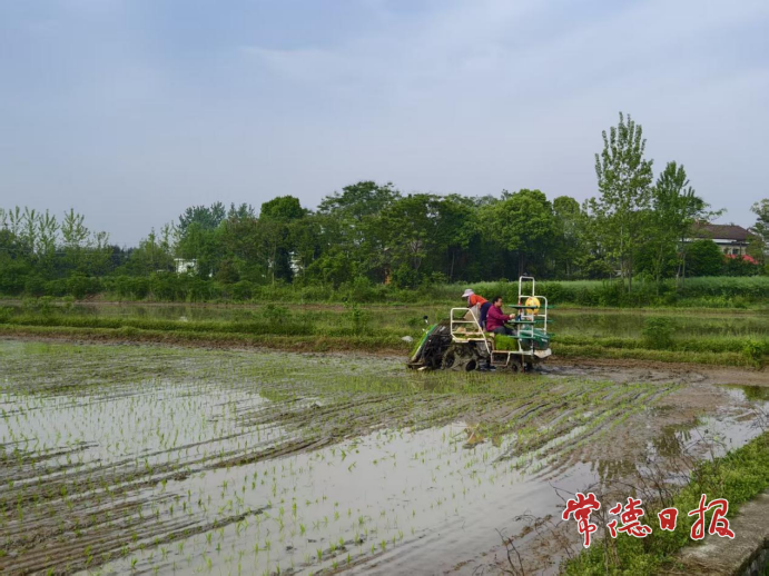 在楚城社区种粮大户邓楚云的育秧基地内,生产线高效运转,工人们有序完成秧苗装箱、转运、插秧等工序。机械化作业相较于传统人工撒播,大幅提升效率与质量,更减轻了劳动强度。“过去人工插秧又慢又累,现在开着插秧机就把秧插了,活不累还干得快。”基地农户感慨道。