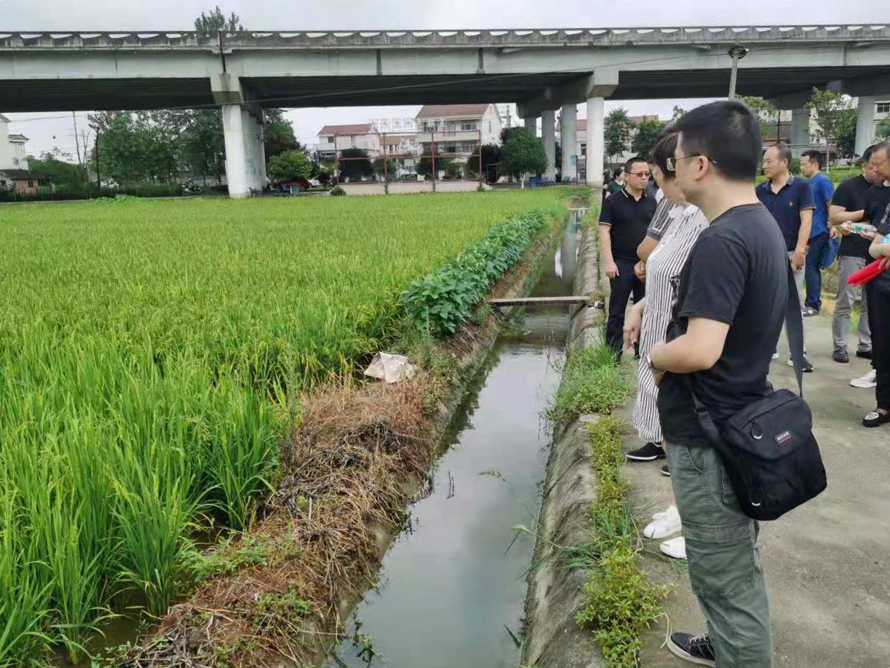 (党员干部深入实践,在李白溪村早稻生产示范片现场查看早稻生长情况)