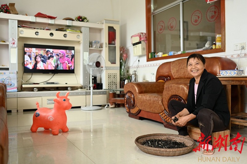 (9月21日,临澧县刻木山乡岩龙村,建档立卡户黄满华在家剥绿豆。湖南日报记者 唐俊 摄)
