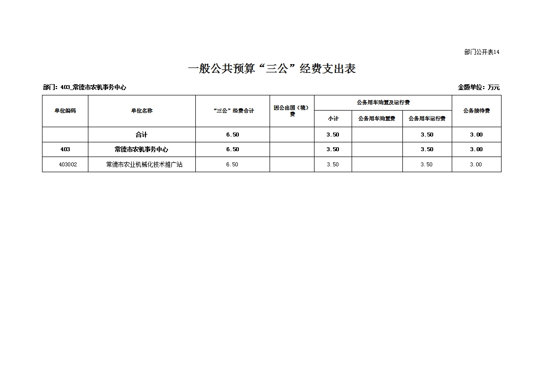 常德市农业机械化技术推广站2023年“三公”经费支出情况表
