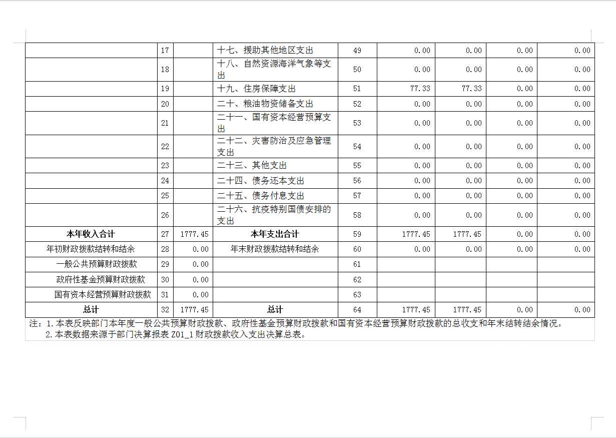 2022年度收入合计1777.45万元,其中:财政拨款收入1777.45万元,占100%;上级补助收入0万元,占0%;事业收入0万元,占0%;经营收入0万元,占0%;附属单位上缴收入0万元,占0%;其他收入0万元,占0%。
