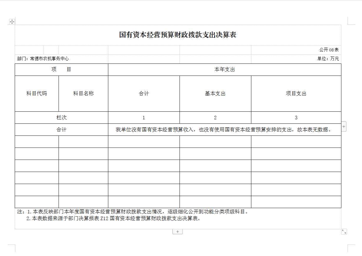 常德市农机事务中心本级及其二级机构均无国有资本经营预算支出