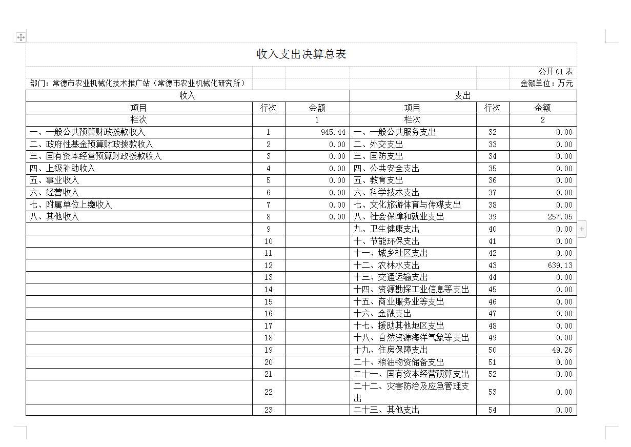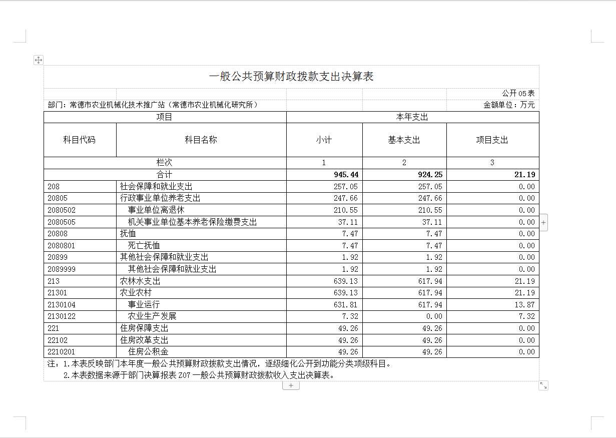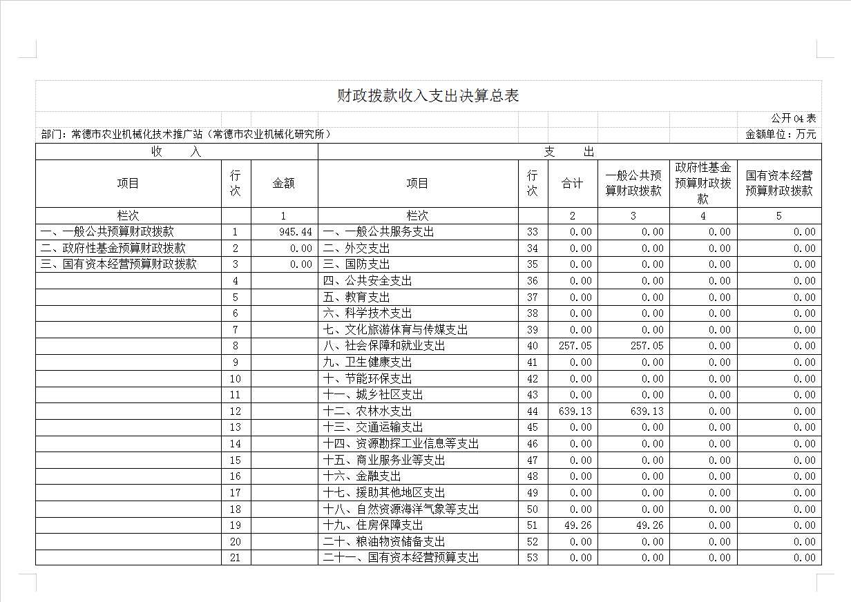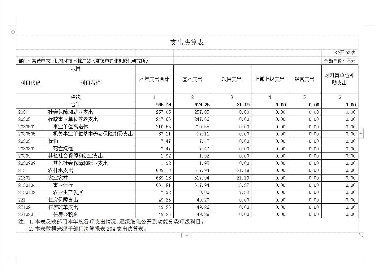 本次绩效评价包括常德市农业机械化技术推广站(常德市农业机械化研究所)本级。