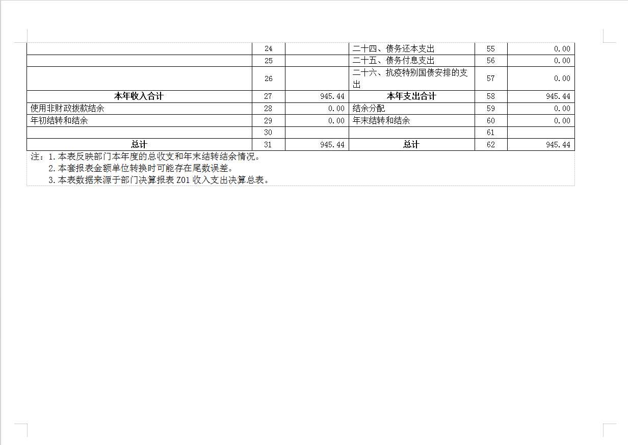 2022年度收入总计945.44万元。与上年相比,增加83.29万元,增长9.66%,主要是因为人员经费增加。支出总计945.44万元。与上年相比,增加83.29万元,增长9.66%,主要是因为人员经费增加。