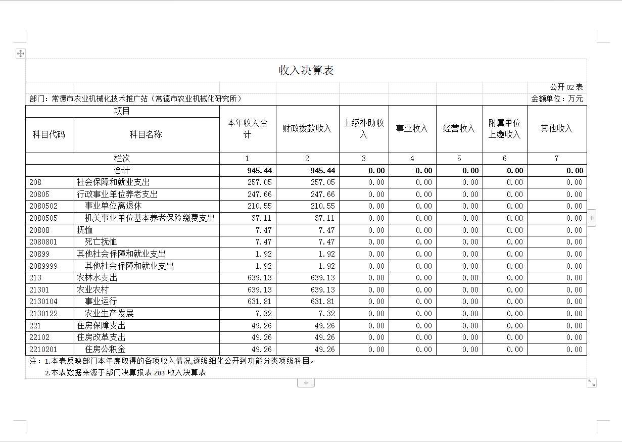 2022年度收入总计945.44万元,其中:财政拨款收入945.44万元,占100%;事业收入0万元,占0%;经营收入0万元,占0%;附属单位上缴收入0万元,占0%;其他收入0万元,占0%。