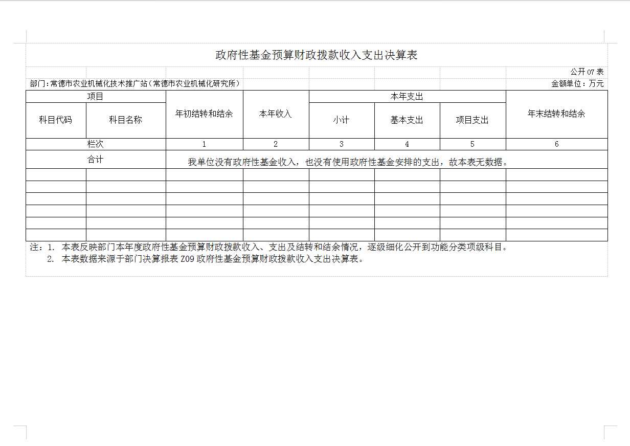 常德市农业机械化技术推广站(常德市农业机械化研究所)无国有资本经营预算支出