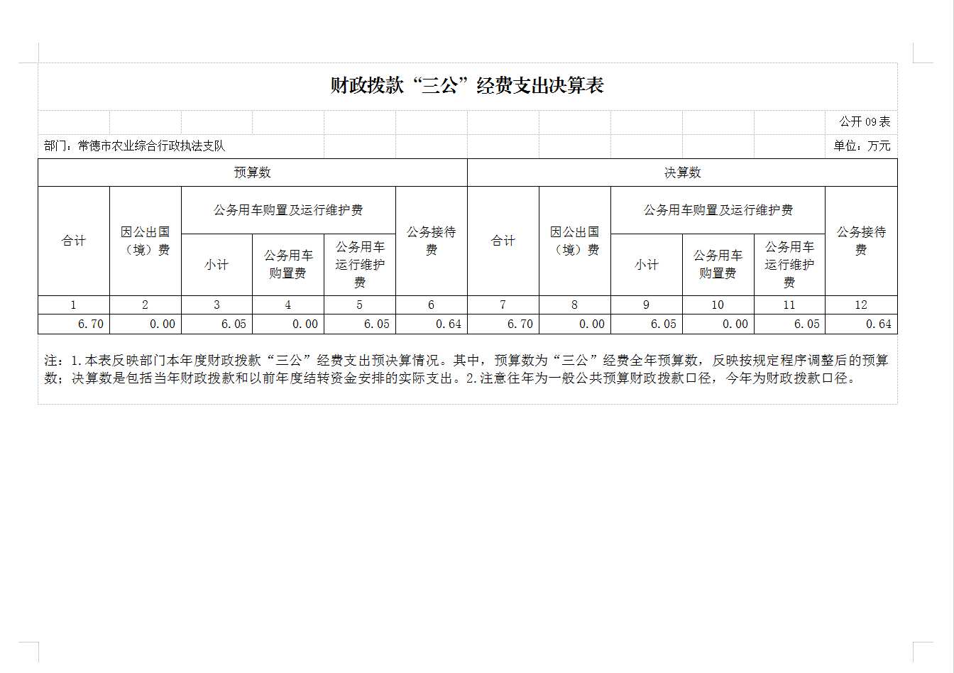 常德市农业综合行政执法支队2022年财政拨款“三公”经费支出决算表