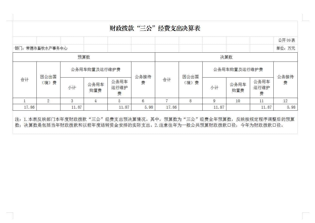 常德市畜牧水产事务中心2022年财政拨款“三公”经费支出决算表