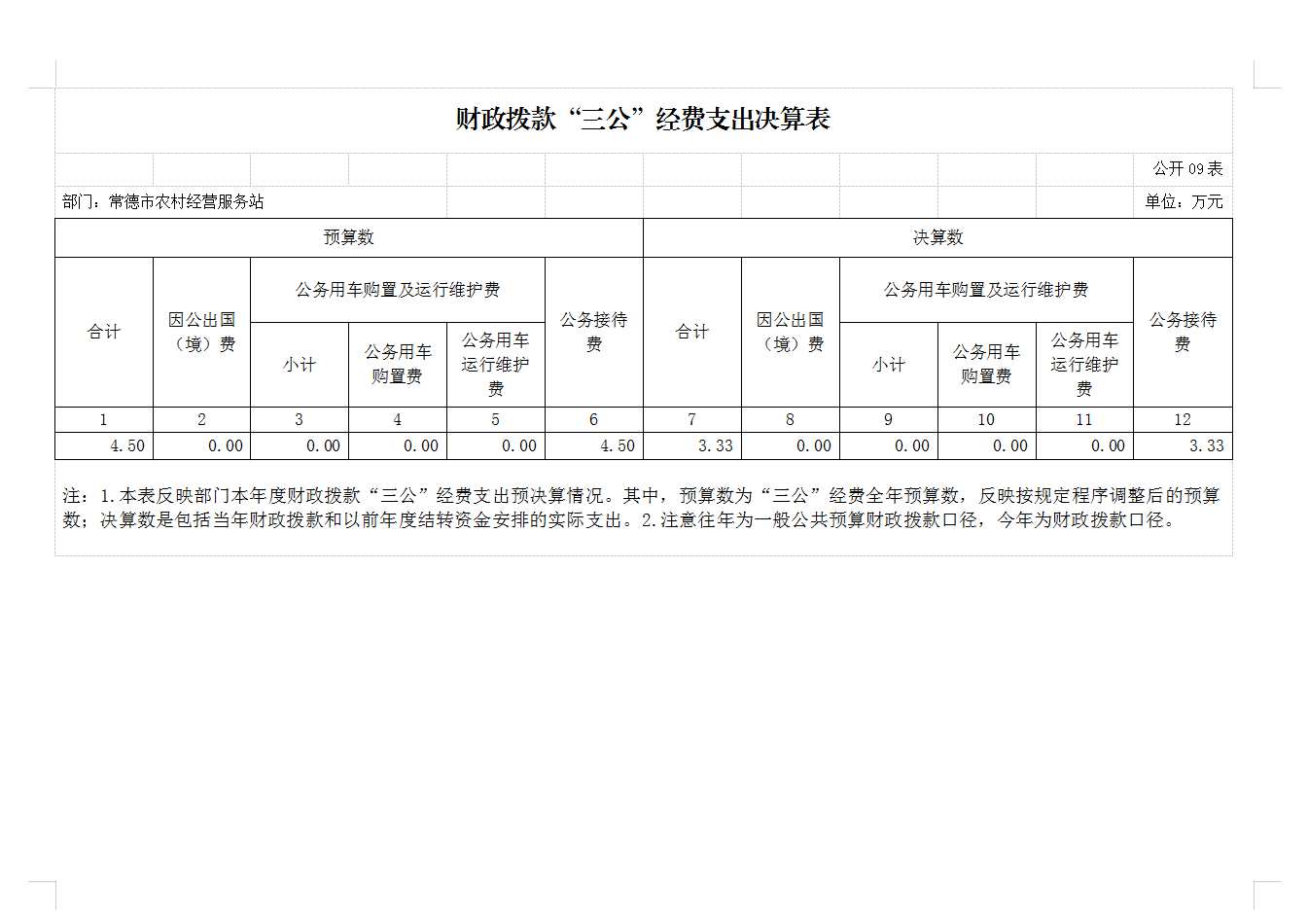 常德市农村经营服务站2022年财政拨款“三公”经费支出决算表