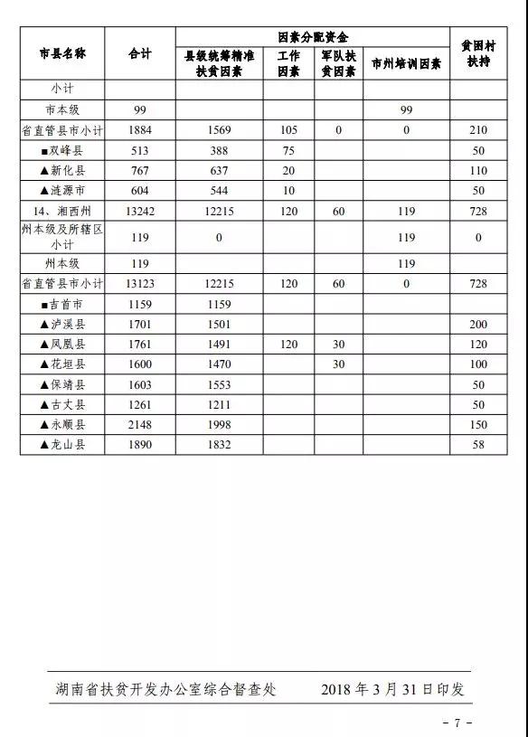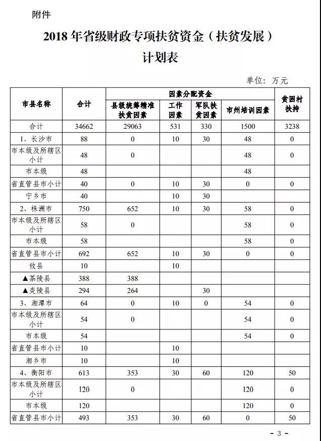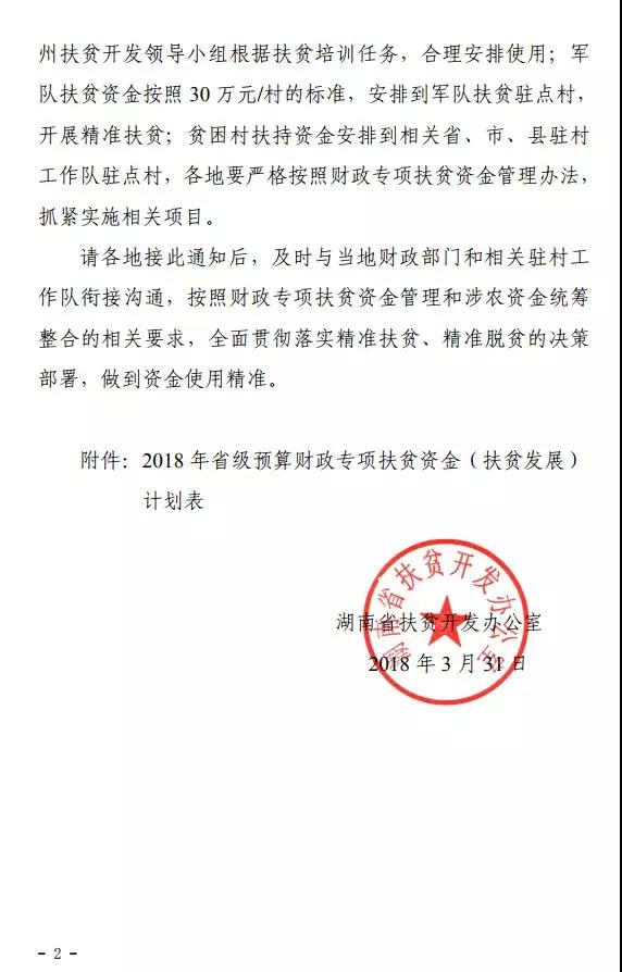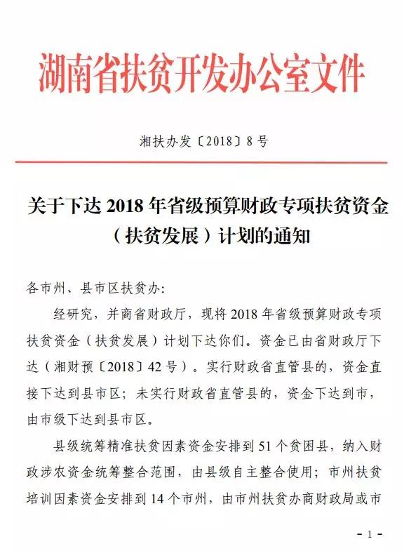 湖南省扶贫开发办公室关于下达 2018 年省级预算财政专项扶贫资金(扶贫发展)计划的通知