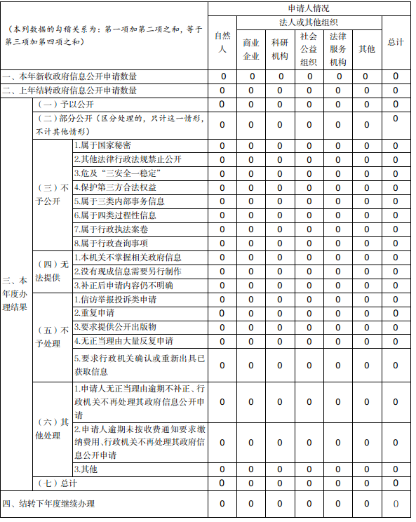 2022年1月1日至12月31日,我局未收到书面或其他形式要求公开政府信息的申请,本年度我局受理依申请公开0件。