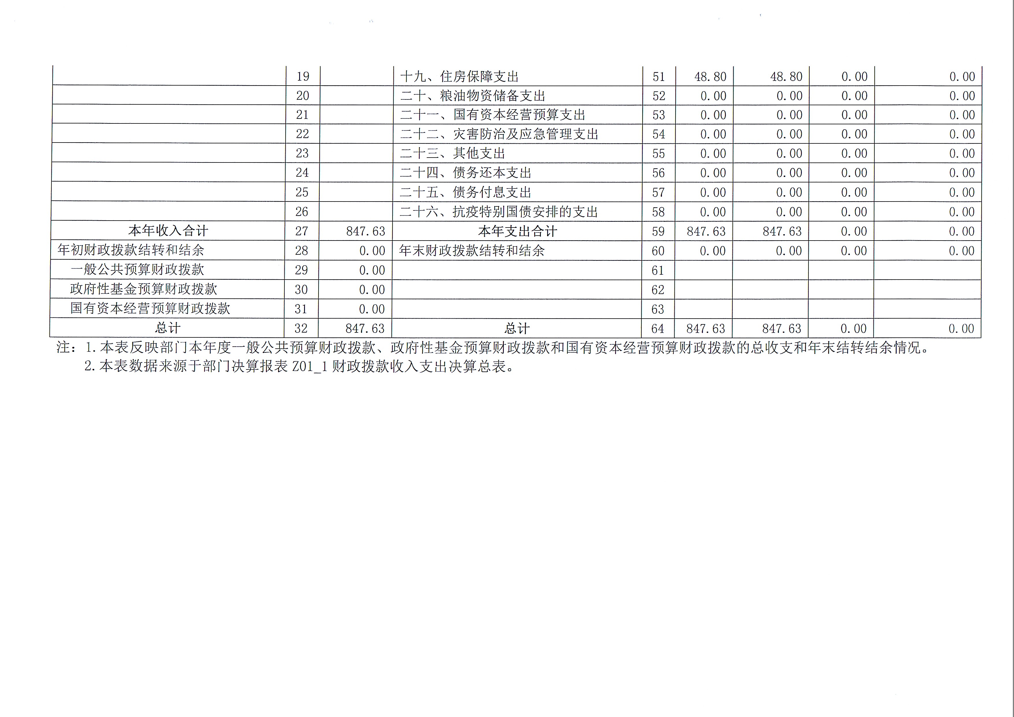 2023年度财政拨款收入总计847.63万元,与上年相比,减少97.81万元,减少10.35%,主要是因为人员经费减少。财政拨款支出总计847.63万元。与上年相比,减少97.81万元,减少10.35%,主要是因为人员经费减少。