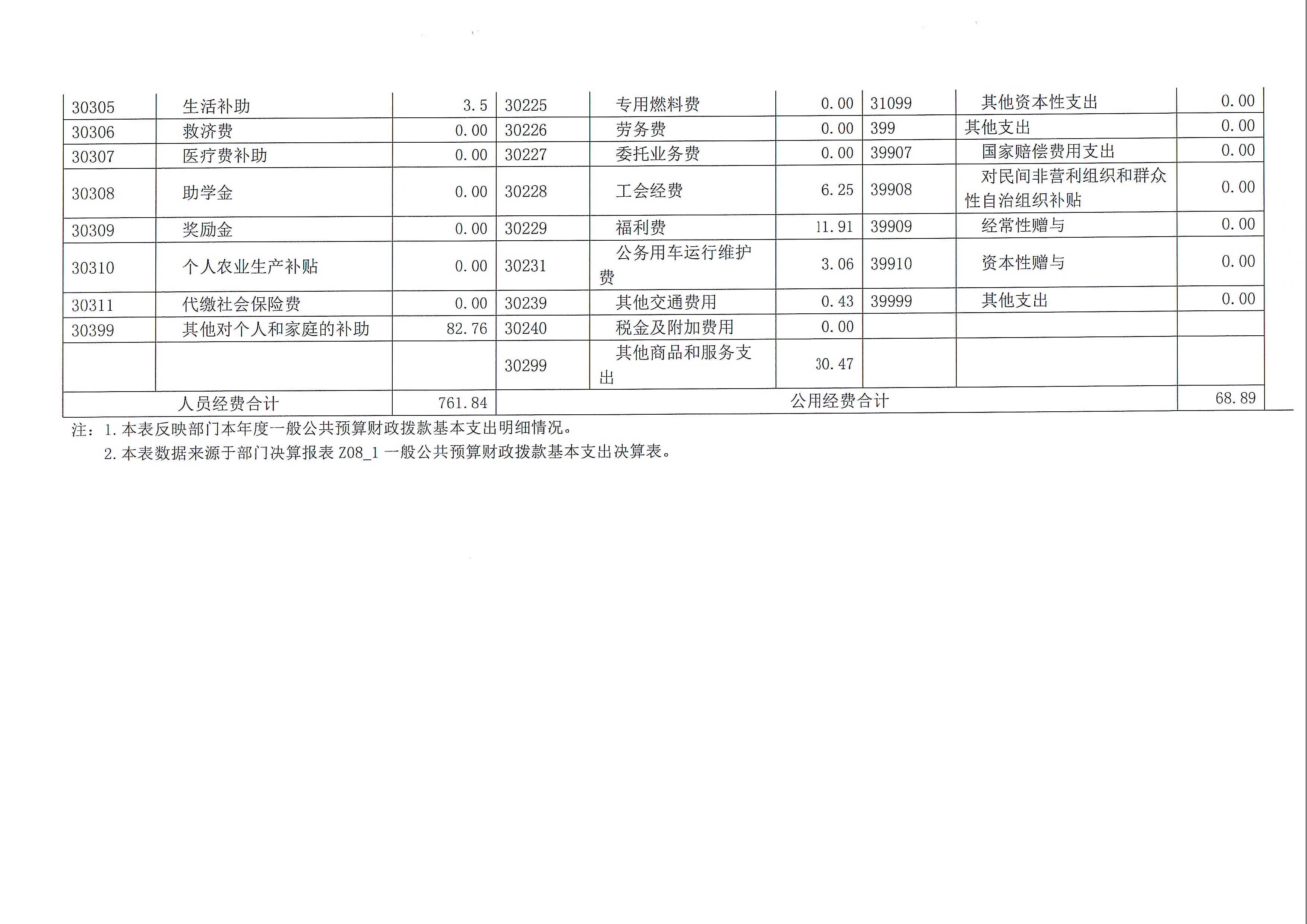 人员经费761.84万元,占基本支出的91.71%,主要包括基本工资、津贴补贴、奖金、绩效工资、机关事业单位基本养老保险缴费、职工基本医疗保险缴费、住房公积金、离休费、退休费等。