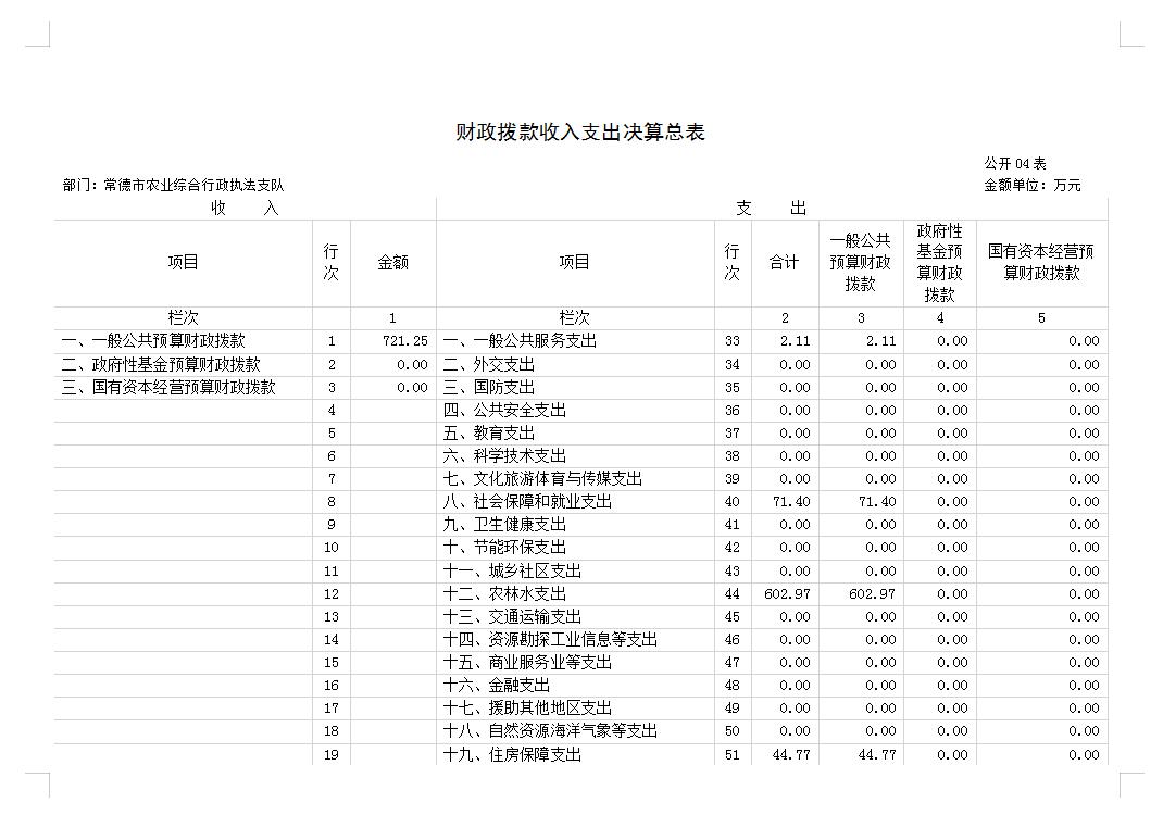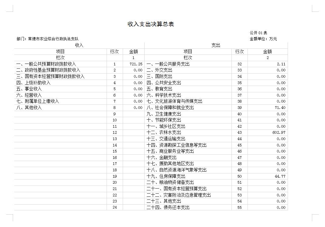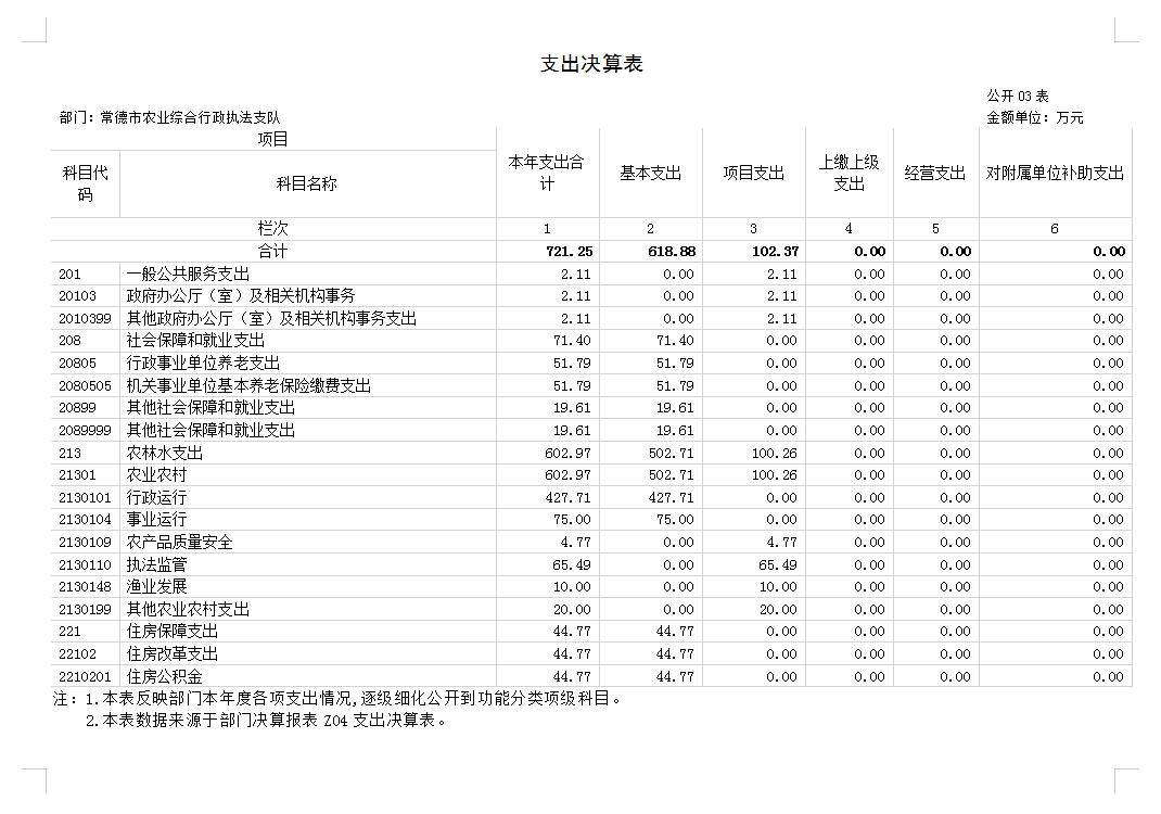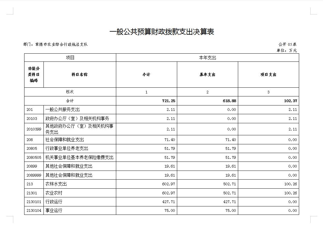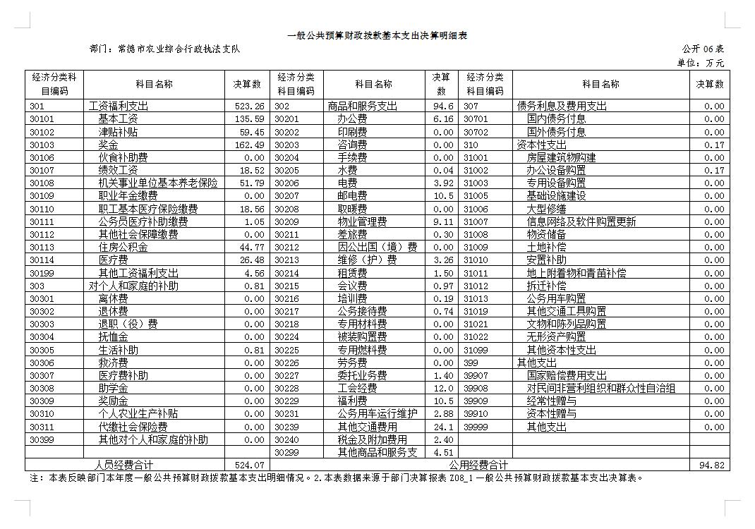 预算单位名 称 | 常德市农业综合行政执法支队 | |||||||||||