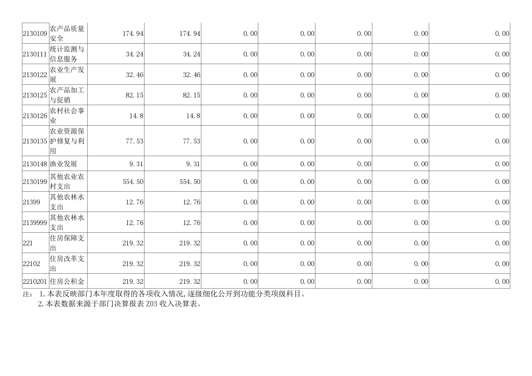 二、收入决算表
