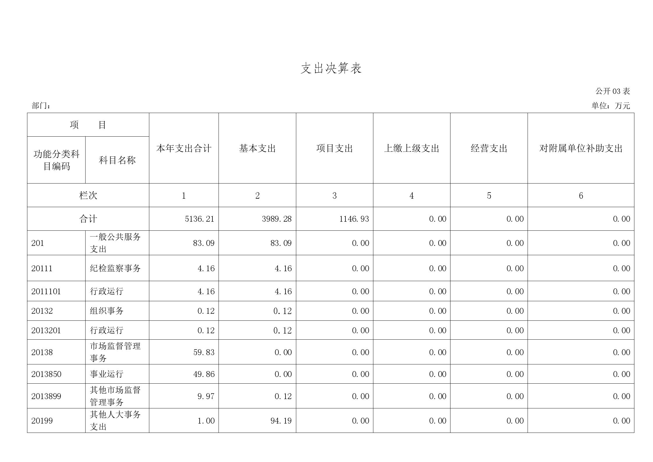 2023年度支出合计5136.21万元,其中:基本支出3989.28万元,占77.67%;项目支出1146.93万元,占22.33%;上缴上级支出0万元,占0%;经营支出0万元,占0%;对附属单位补助支出0万元,占0%。