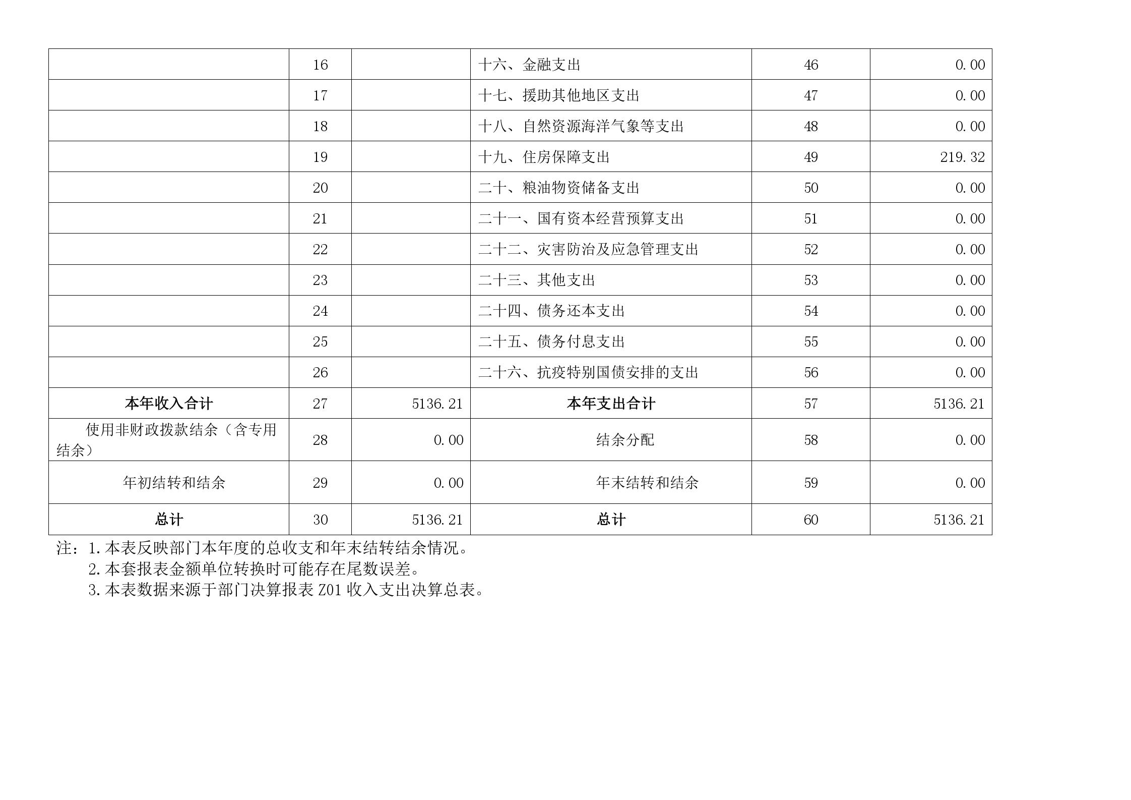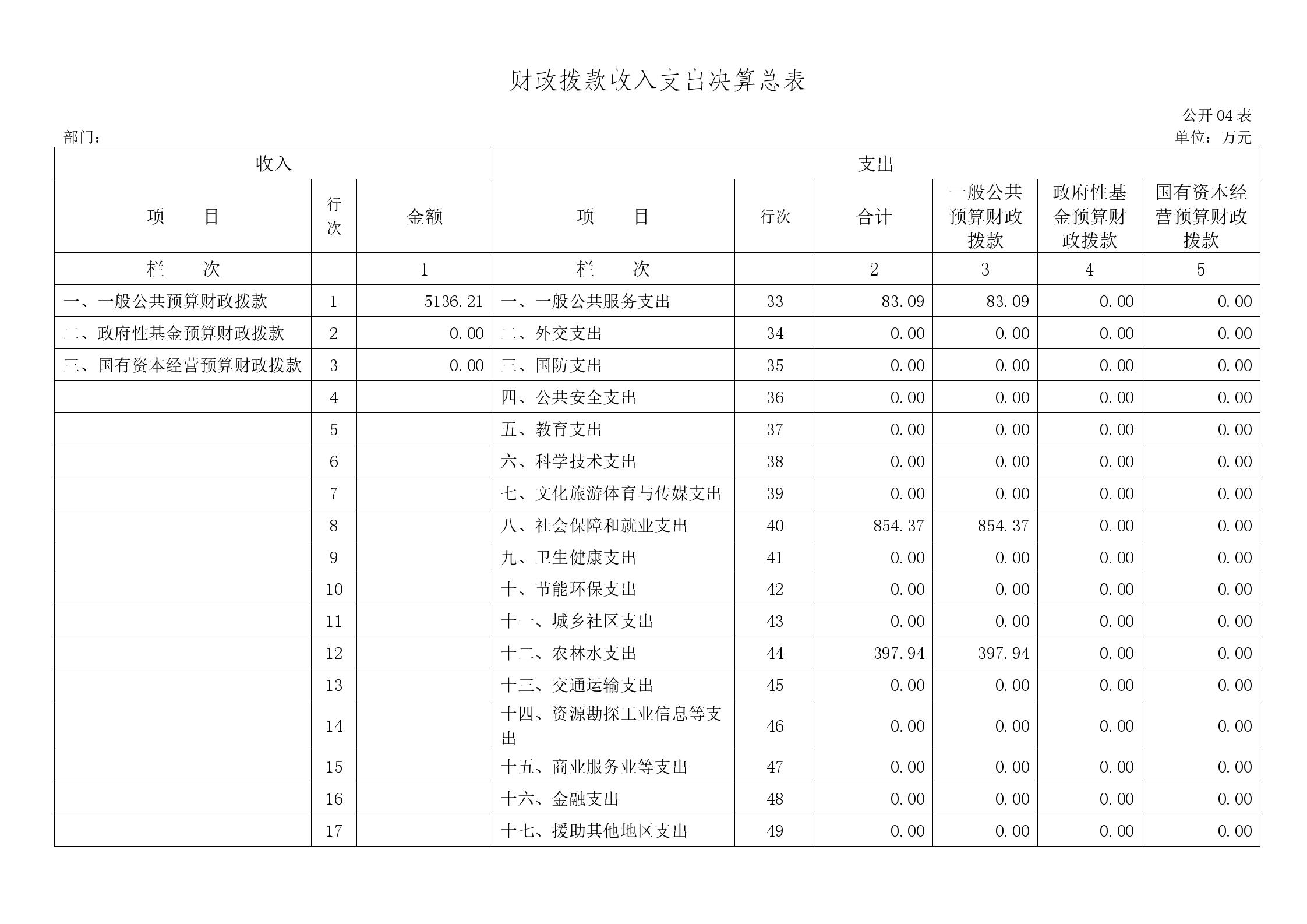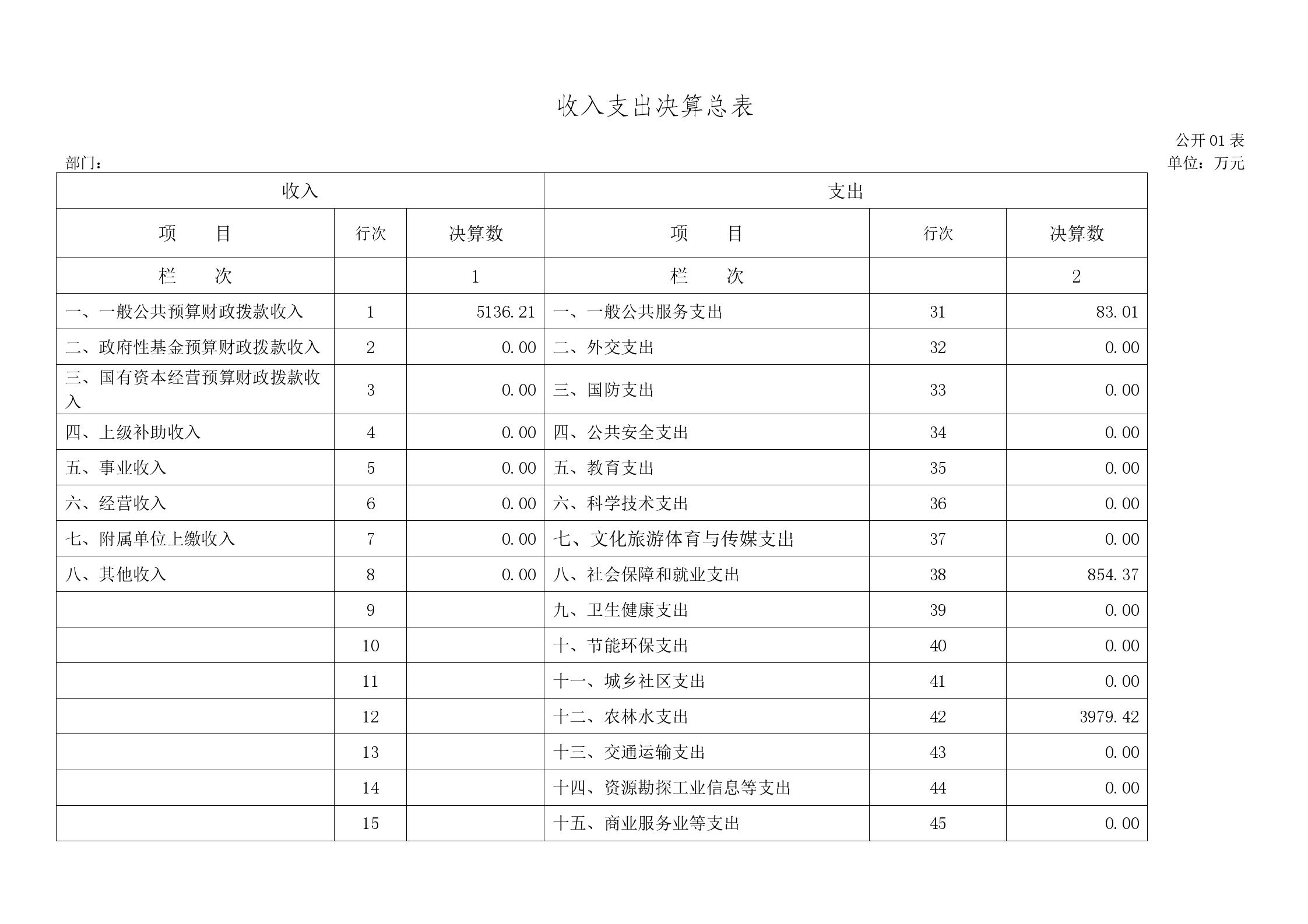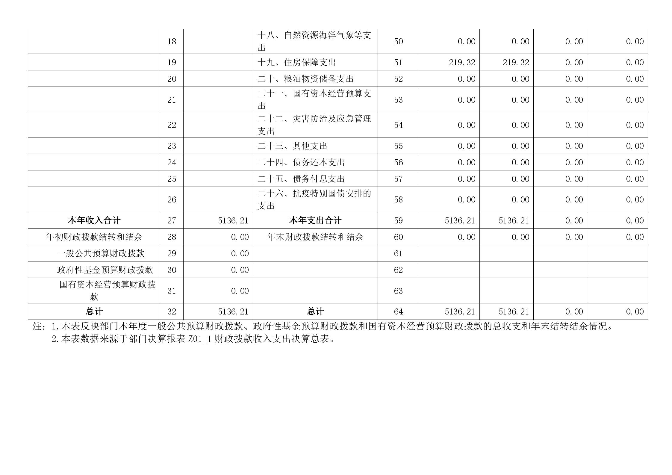 一、收入支出决算总表
