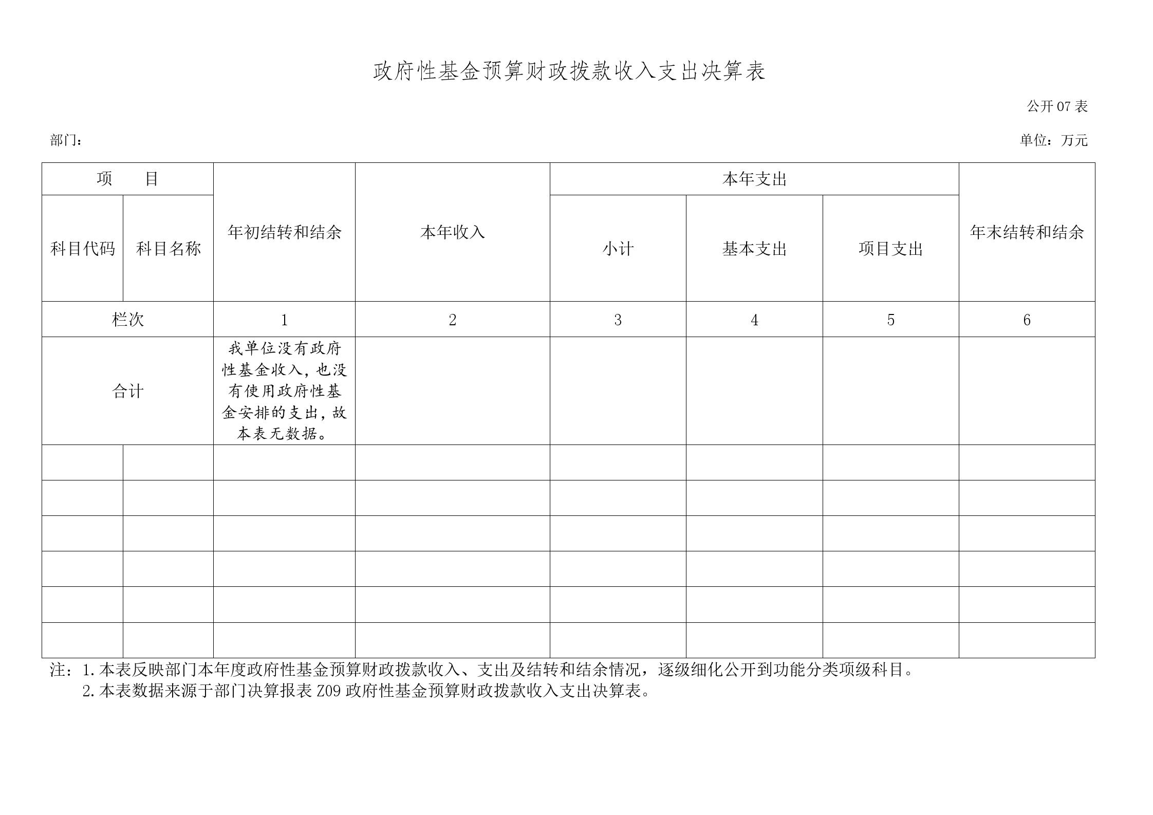 七、政府性基金预算财政拨款收入支出决算表