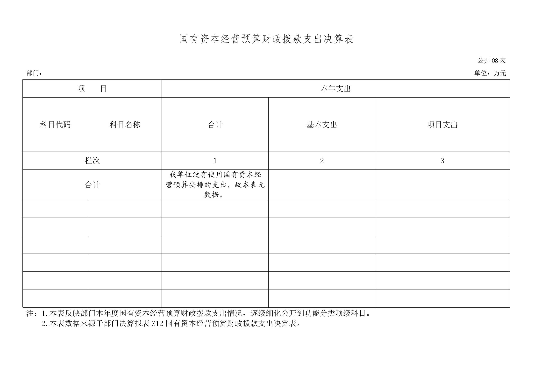 八、国有资本经营预算财政拨款支出决算表