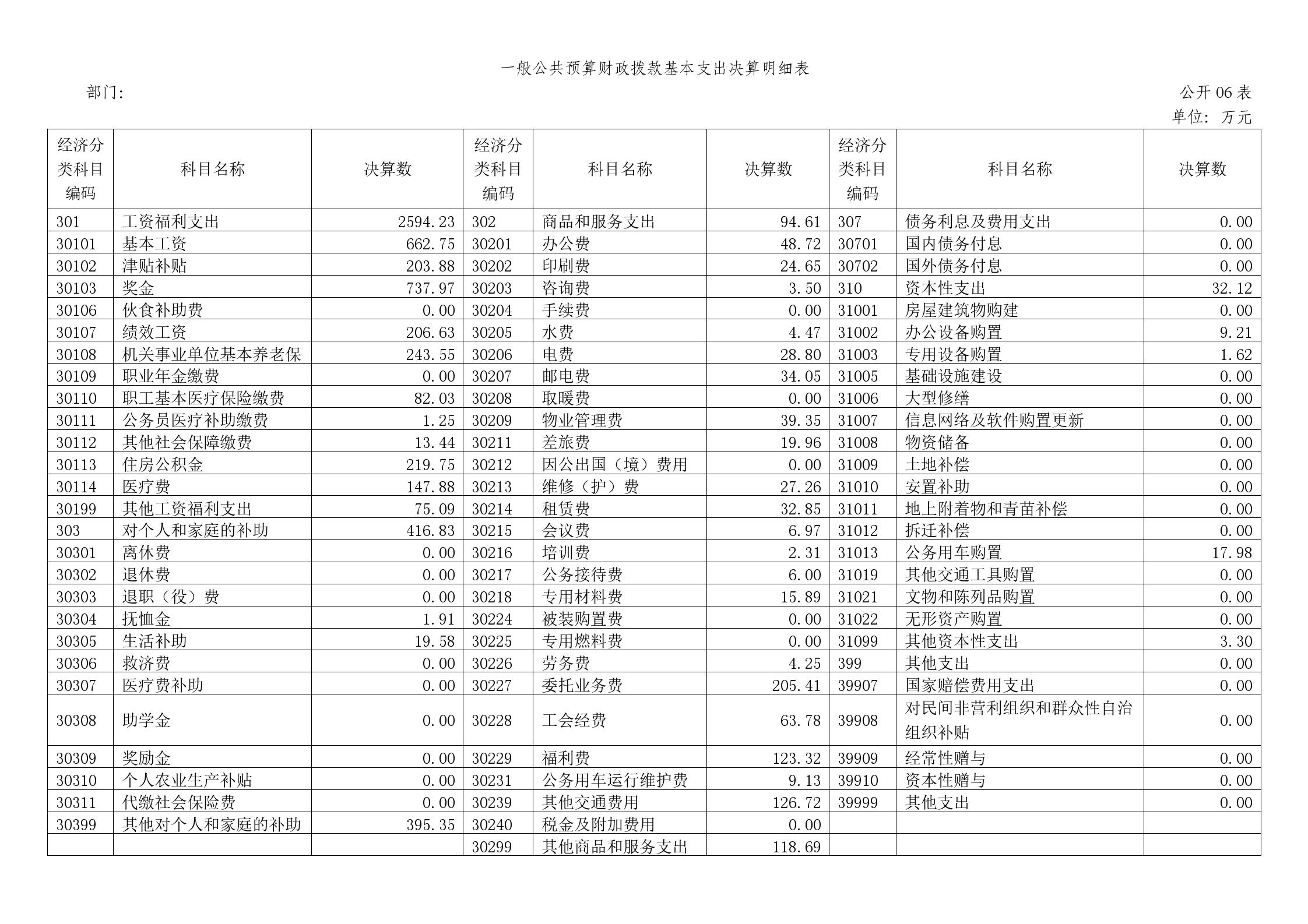 六、一般公共预算财政拨款基本支出决算明细表