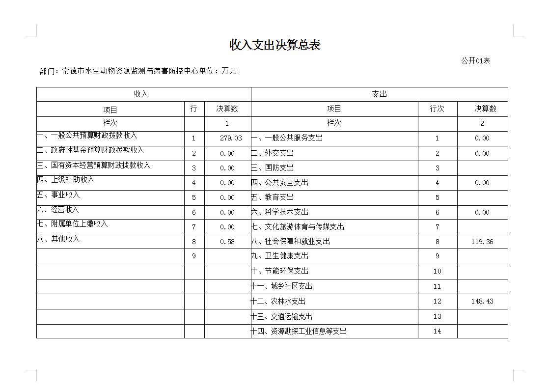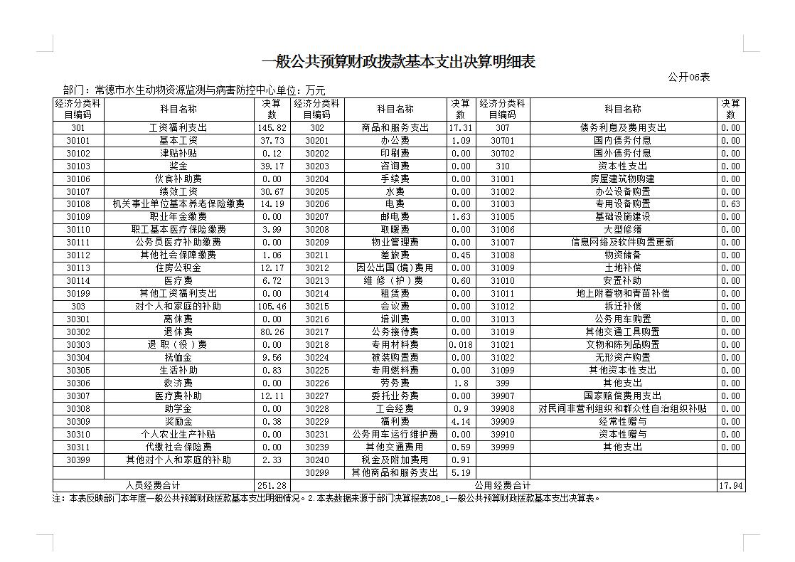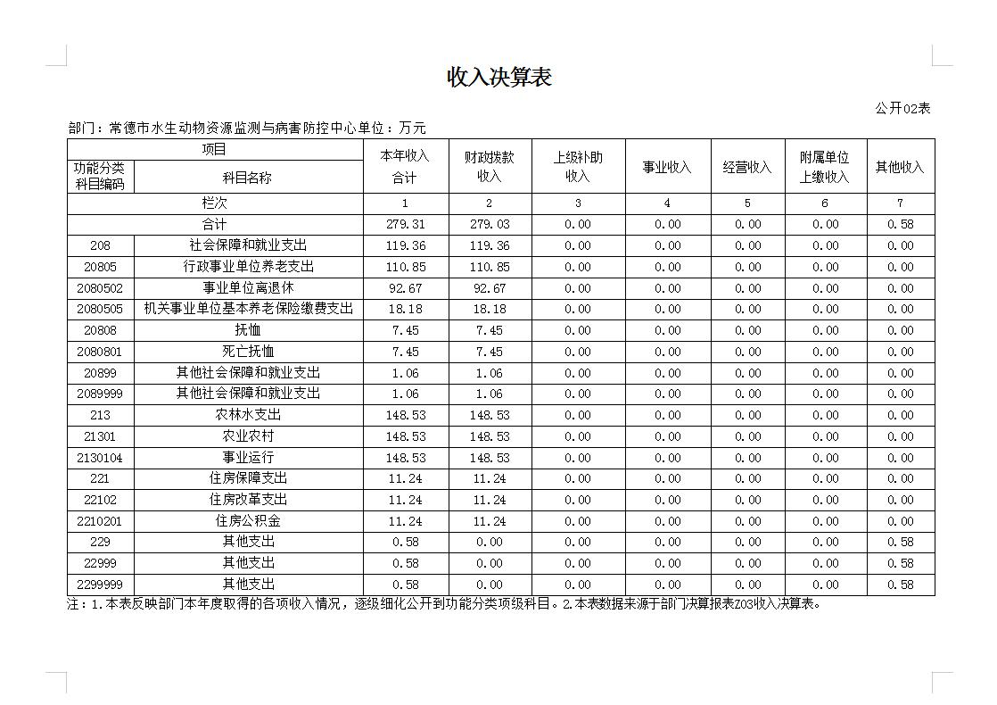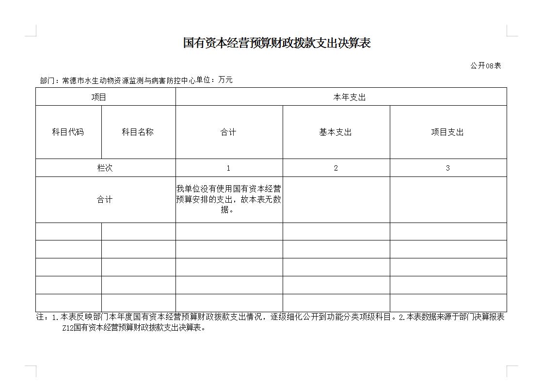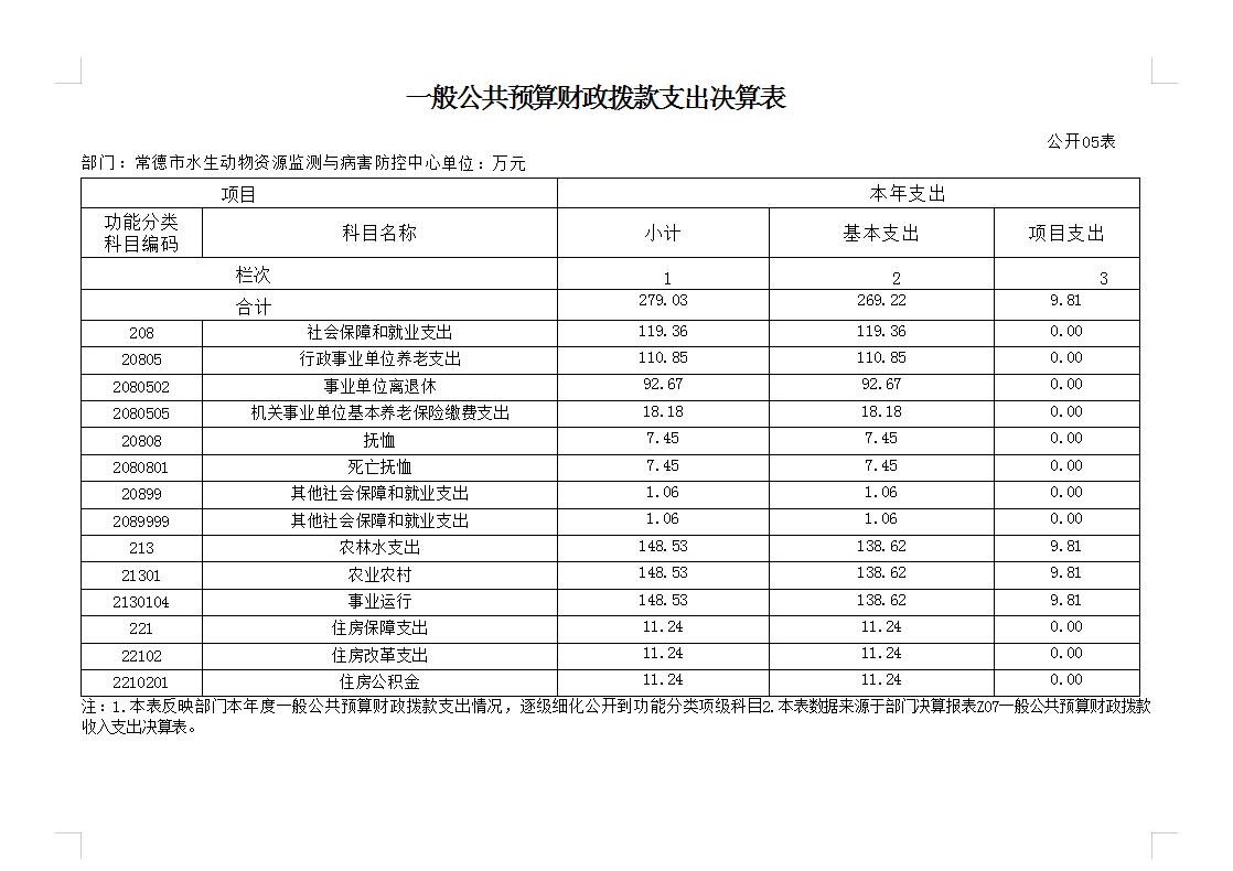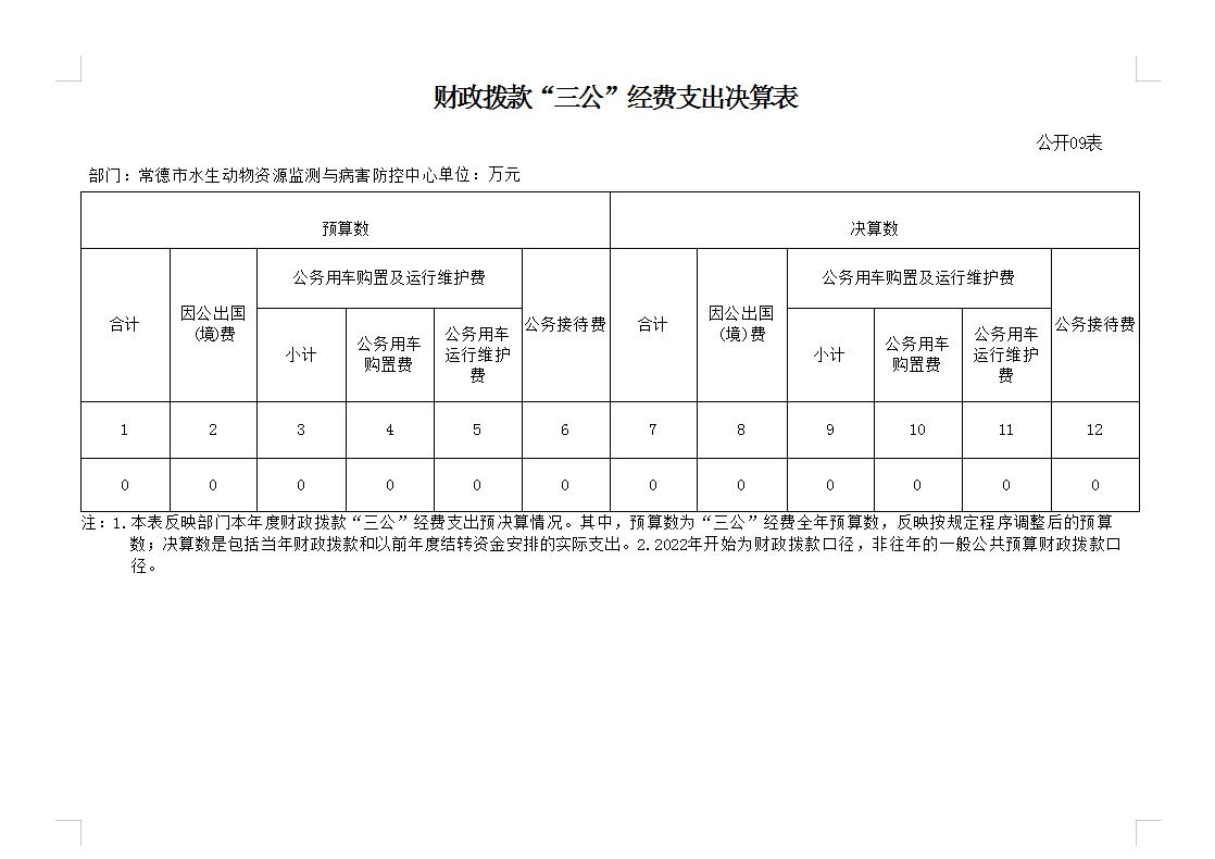 (二)决算单位构成。本单位无所属二、三级预算单位,故2023年部门决算编制范围为常德市水生动物资源监测与病害防控中心单位本级。