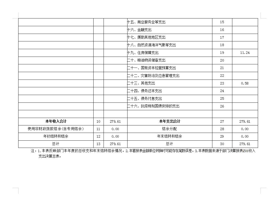 收入情况:2023年年初收入预算数194.65万元,年内调整预算 84.96万元,全年可执行预算收入合计279.61万元,其中,一般公共预算拨款收入279.03万元,其他收入0.58万元。