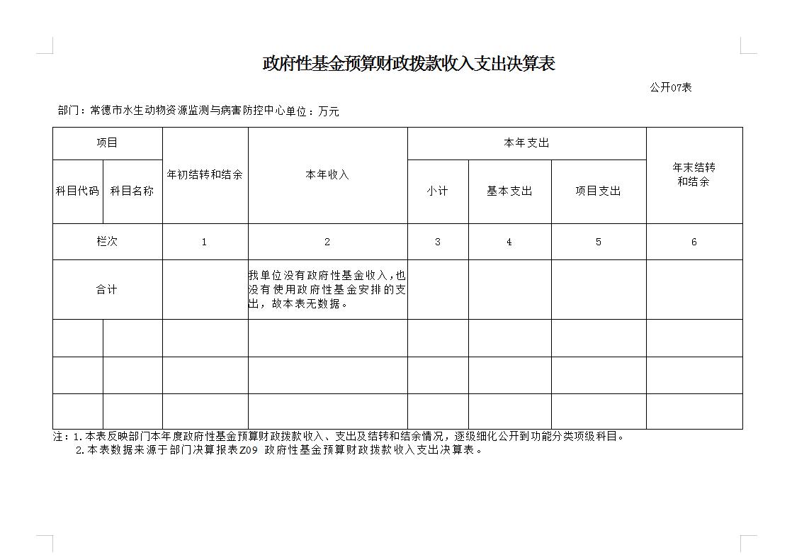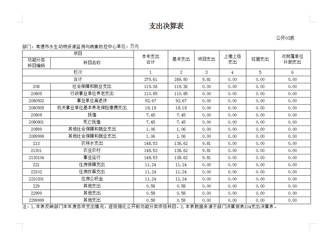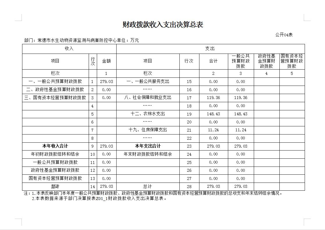 2023年度常德市水生动物资源监测与病害防控中心部门整体支出绩效自评报告