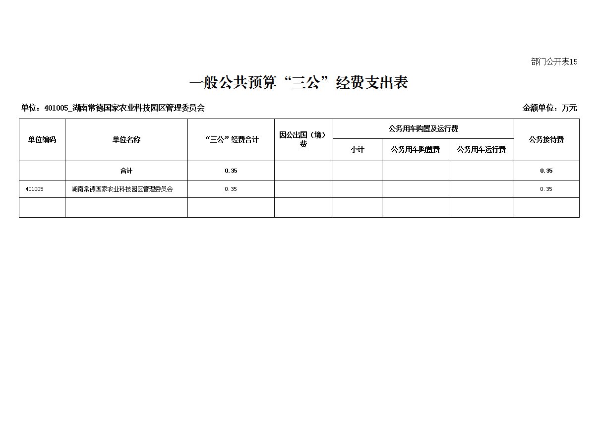 常德国家农业科技园区2025年一般公共预算“三公”经费支出表