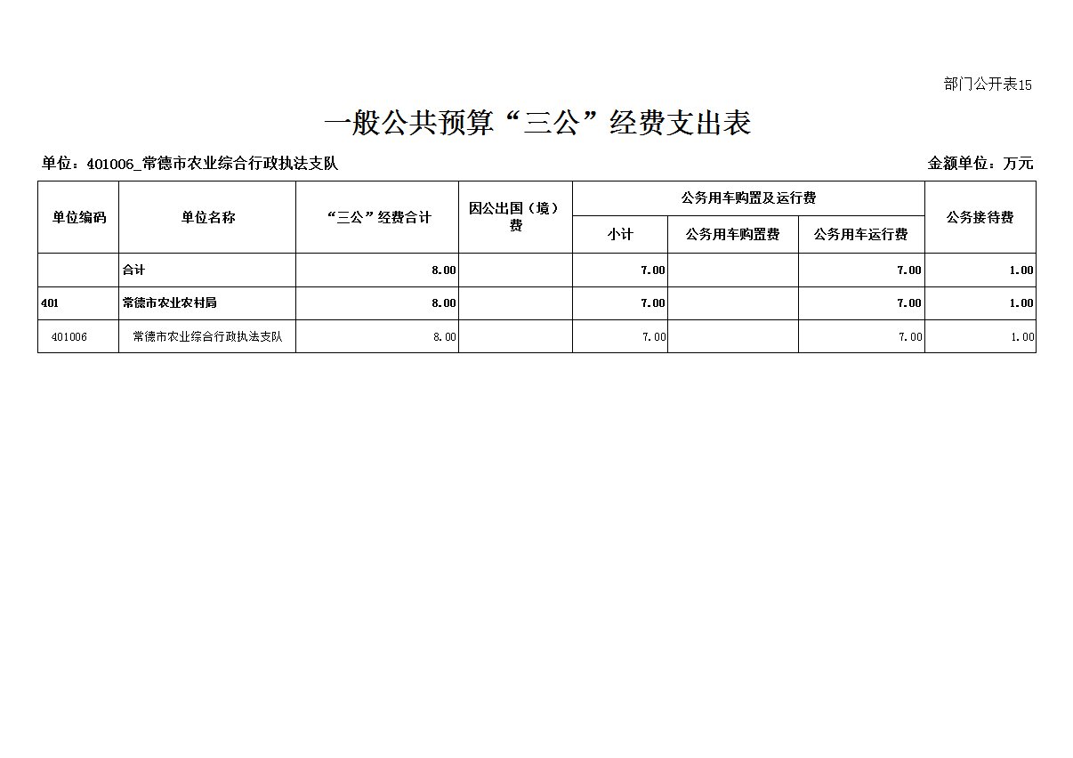 常德市农业综合行政执法支队2025年一般公共预算“三公”经费支出表