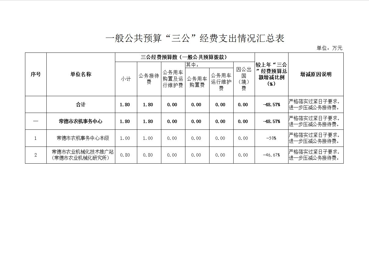 常德市农机事务中心2025年一般公共预算“三公”经费支出表