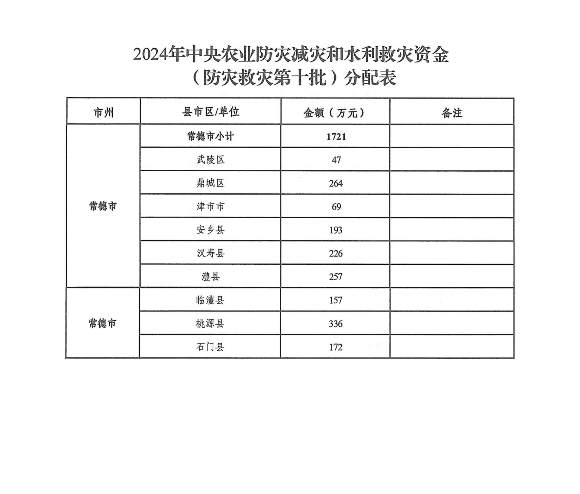 2024年农业防灾减灾和水利救灾资金(防救灾第十批)分配表