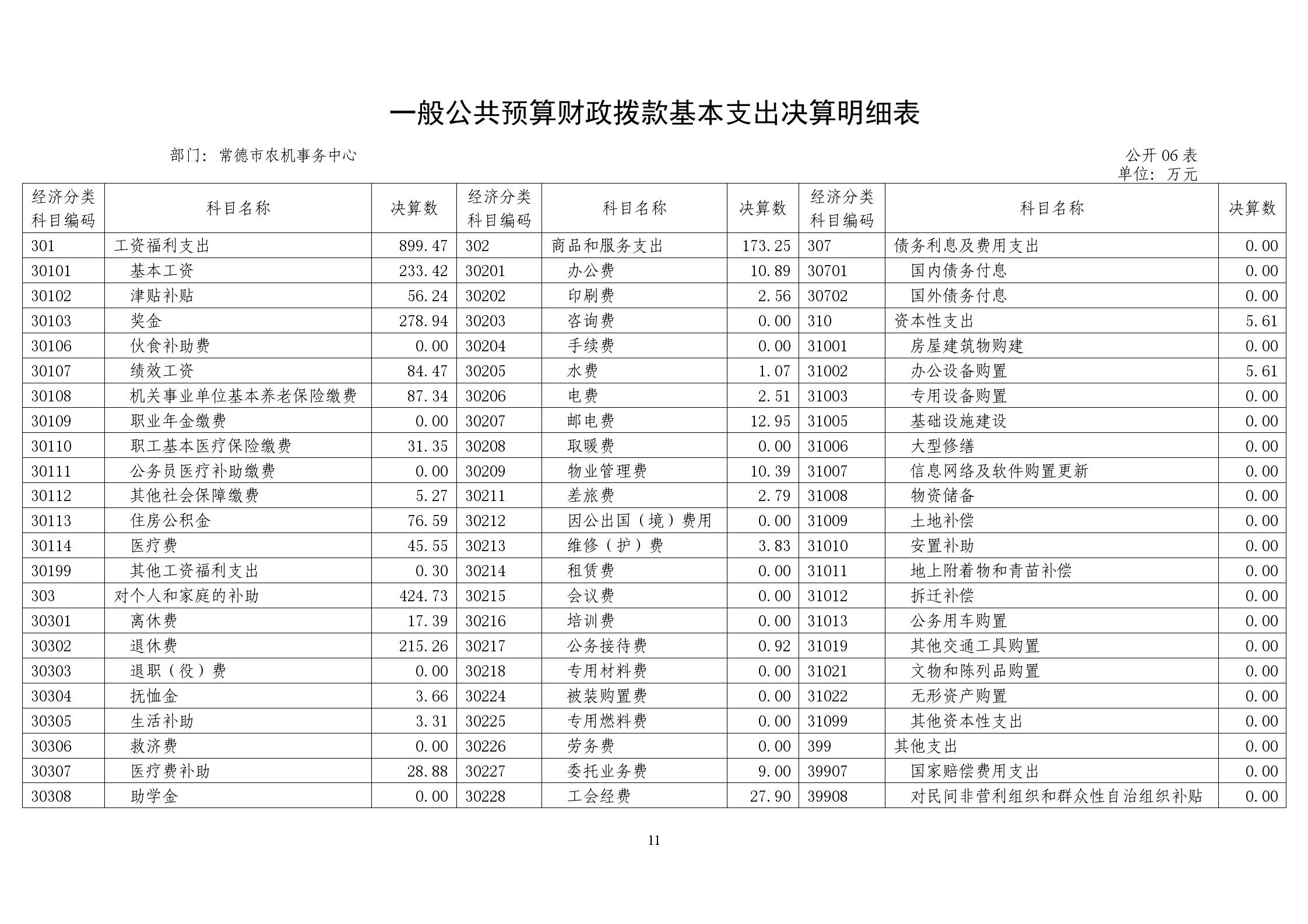 六、一般公共预算财政拨款基本支出决算明细表