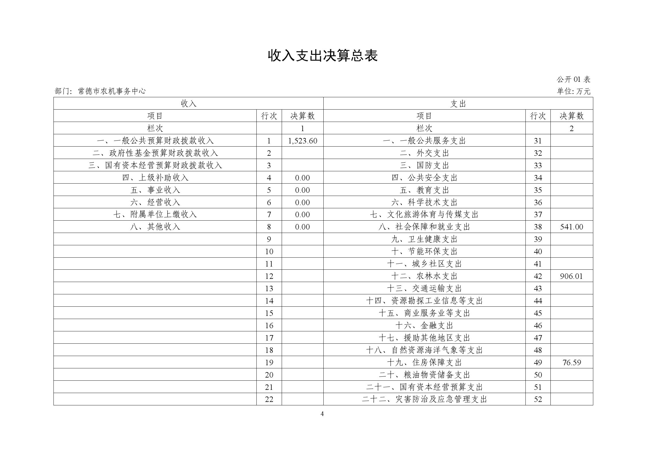四、财政拨款收入支出决算总表