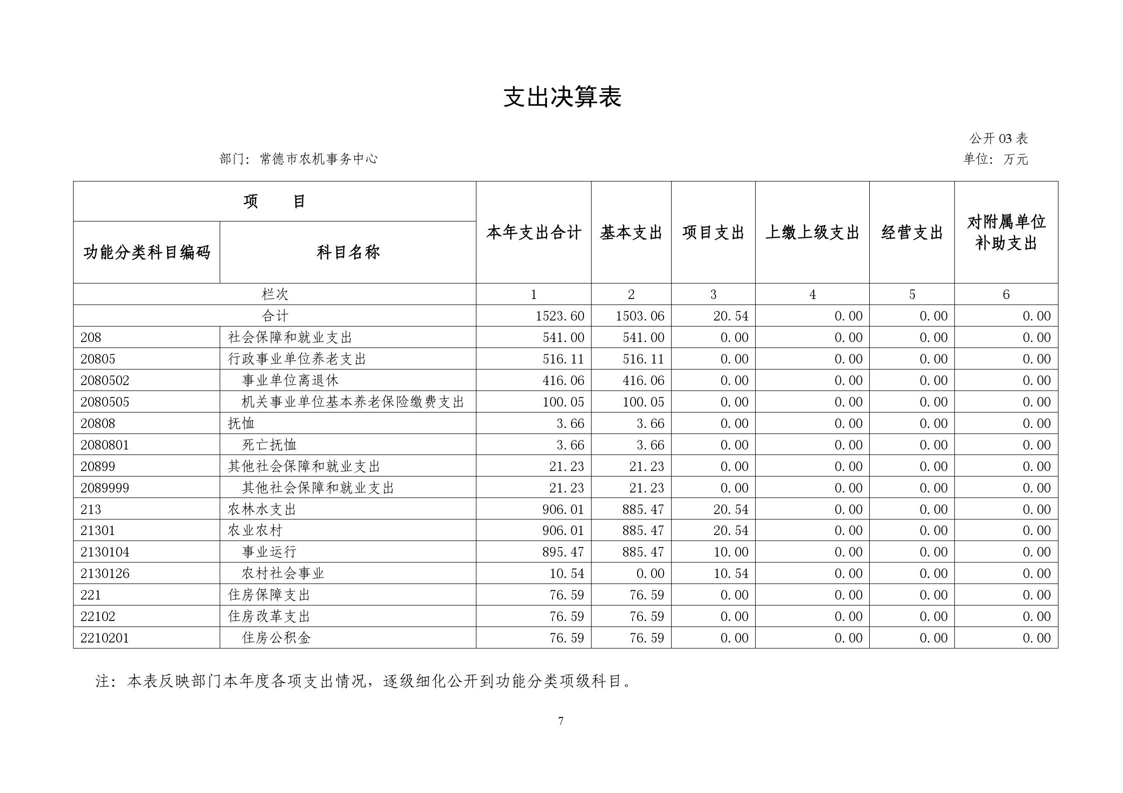 三、支出决算表