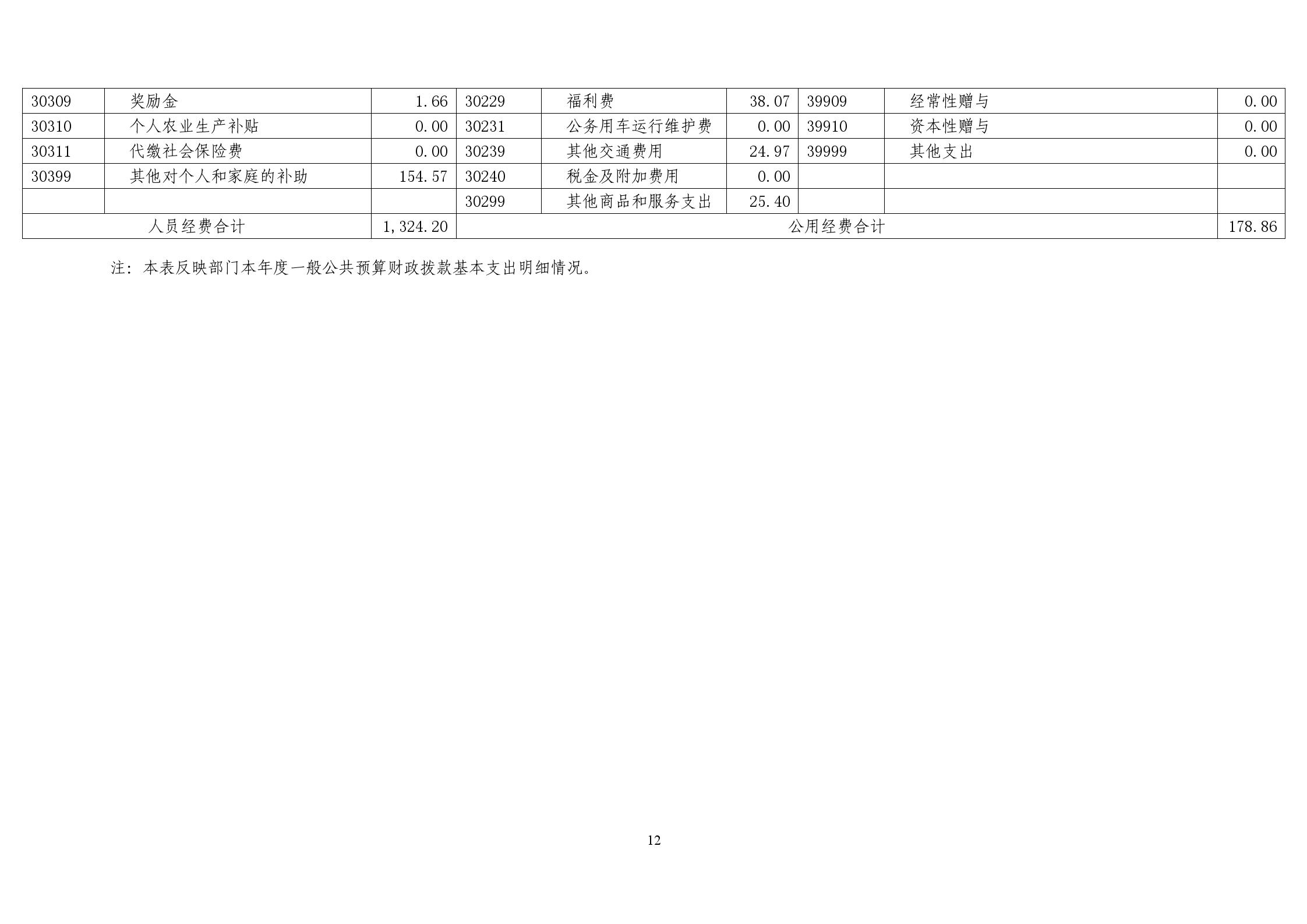 公用经费178.86万元,占基本支出的11.90%,主要包括办公费、印刷费、水费、电费、邮电费、物业管理费、差旅费、维修(护)费、公务接待费、委托业务费、工会经费、福利费、其他交通费用、其他商品和服务支出、办公设备购置。
