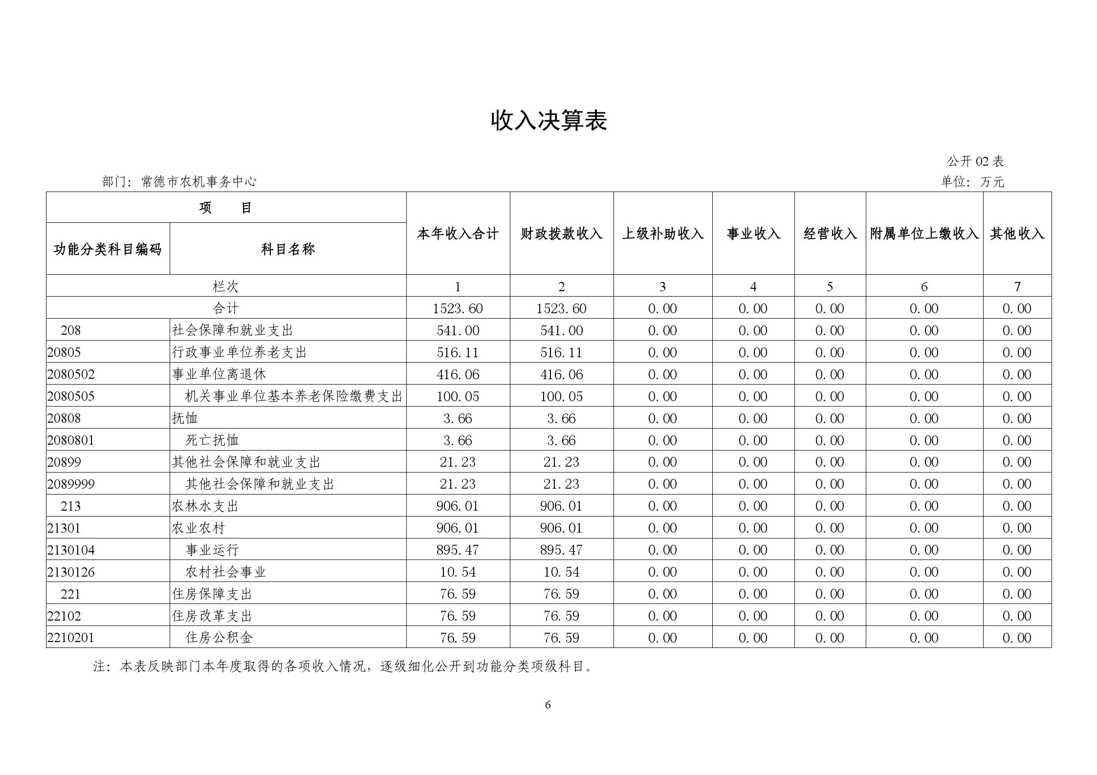 二、收入决算表