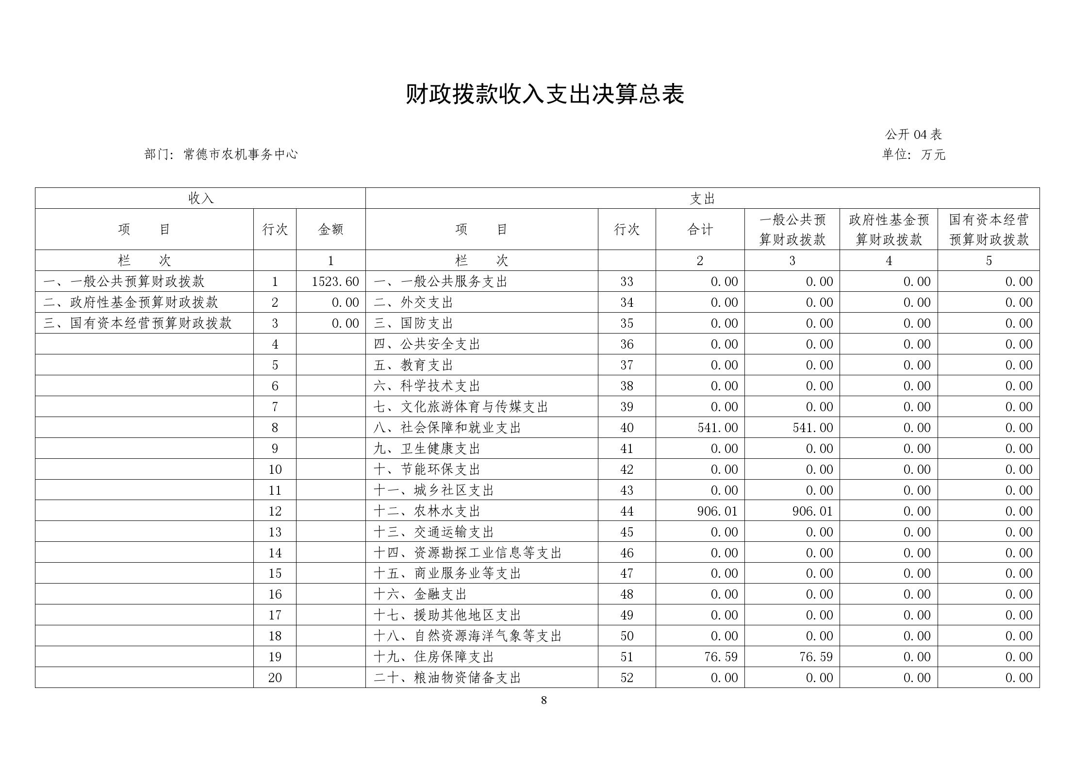 一、收入支出决算总表