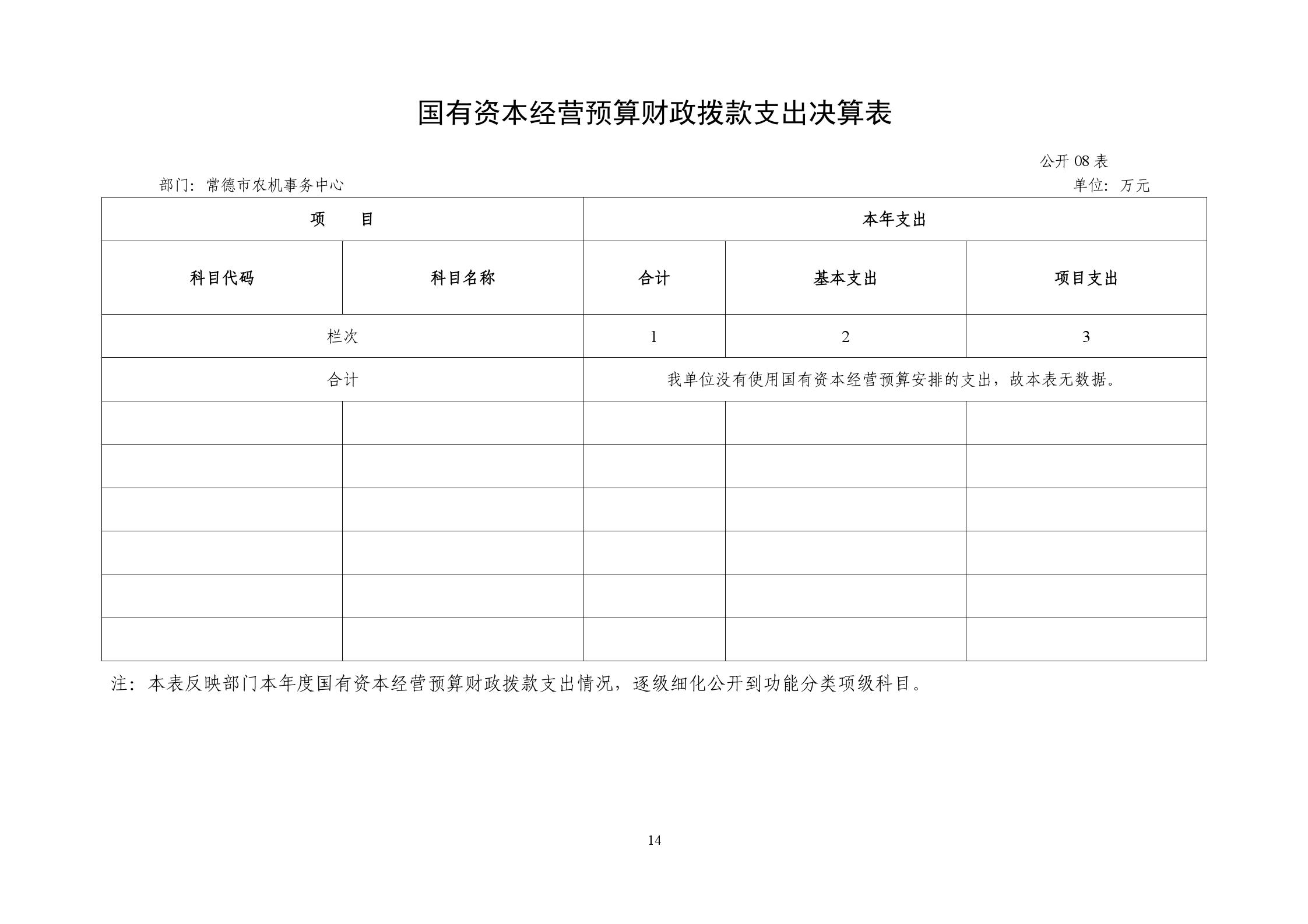 常德市农机事务中心本级及其二级机构均无国有资本经营预算支出。