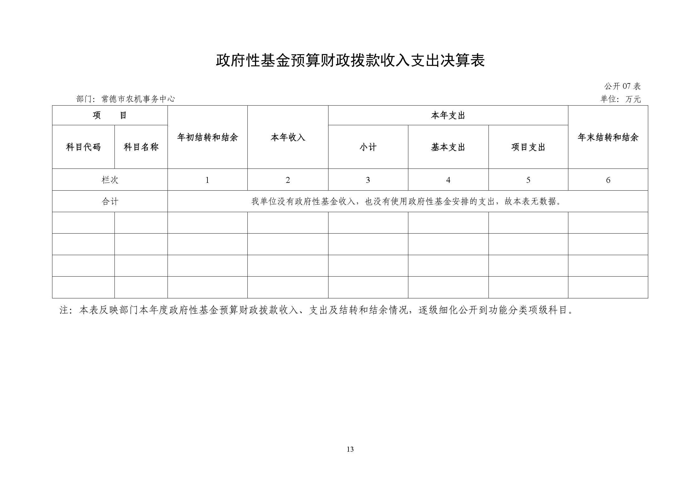 常德市农机事务中心本级及其二级机构均无政府性基金预算支出。
