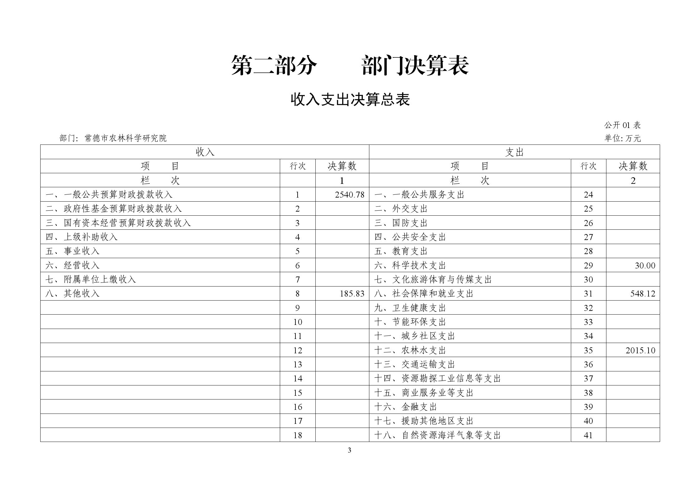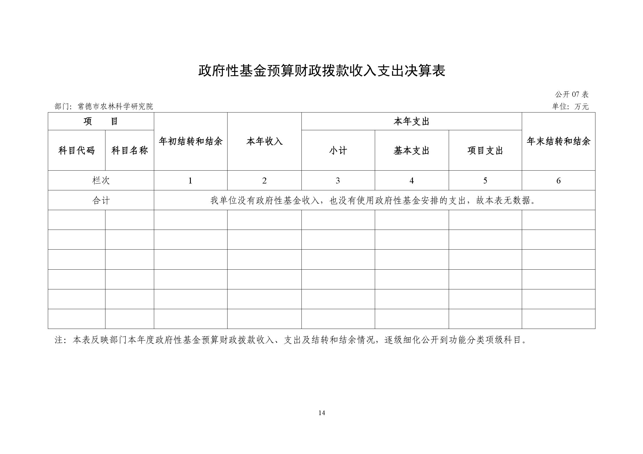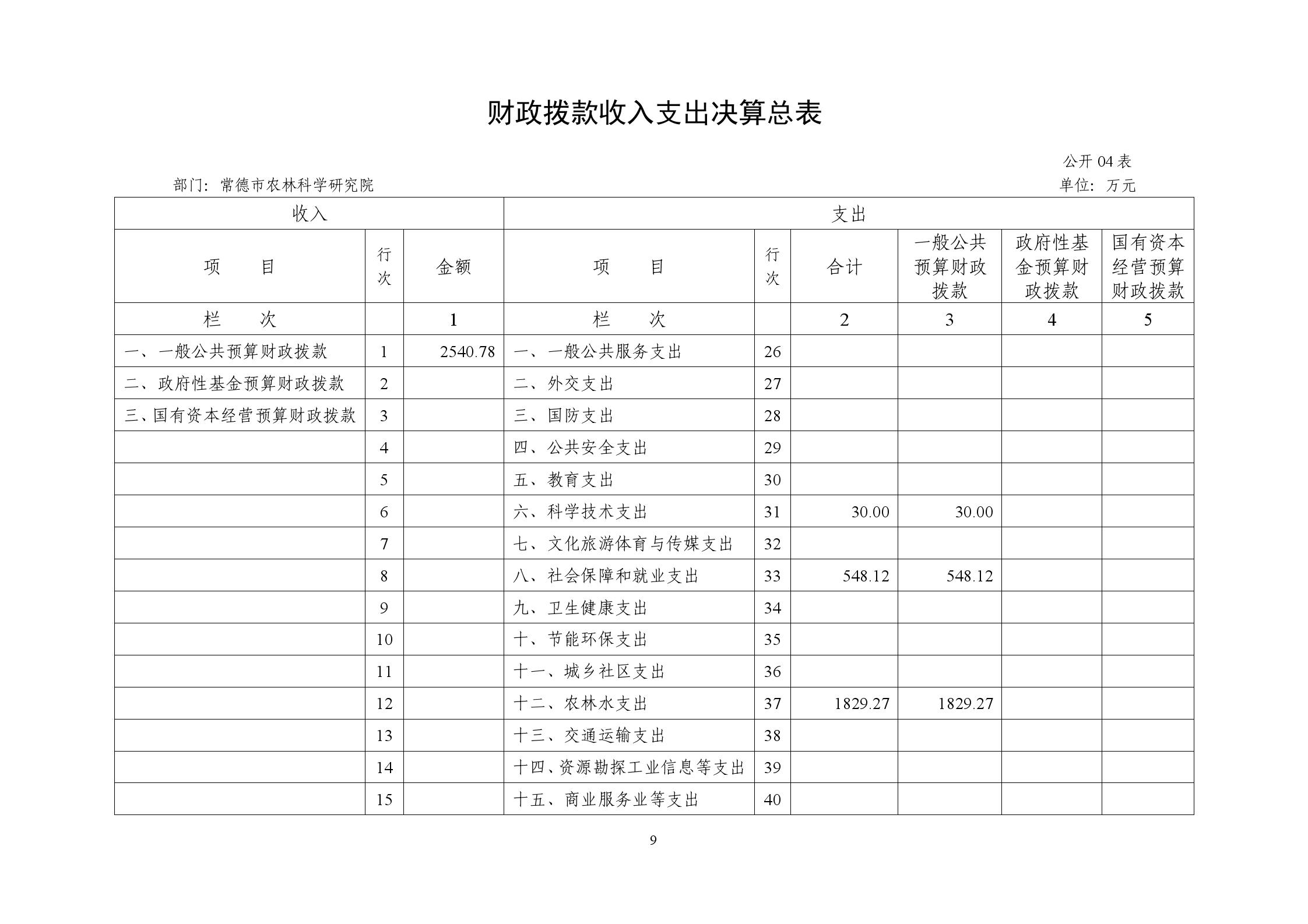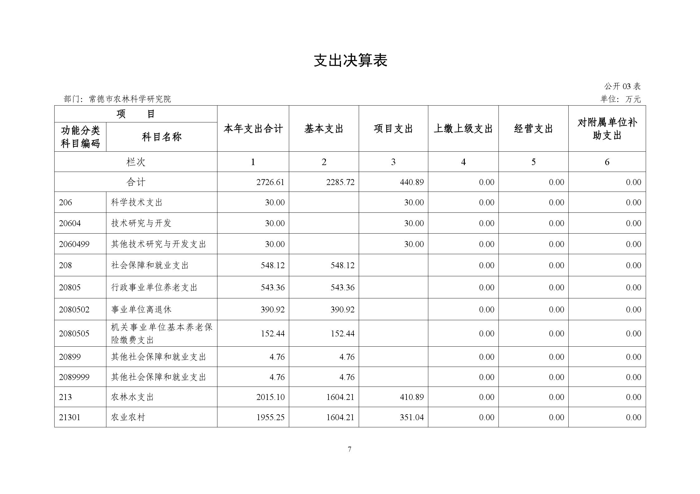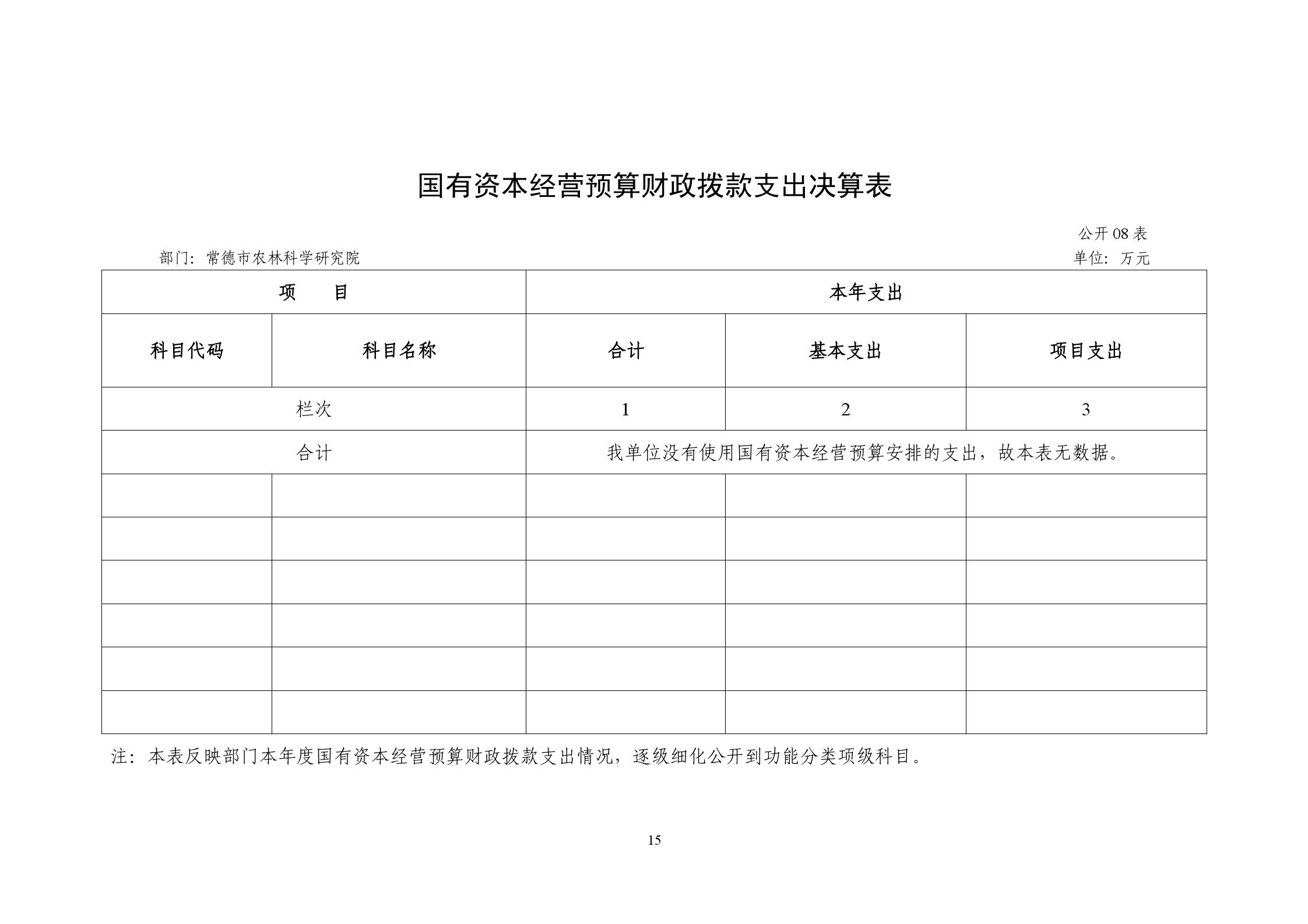 (二)决算单位构成。本单位无所属二、三级预算单位,故2024年部门决算编制范围的为常德市农林科学研究院单位本级。