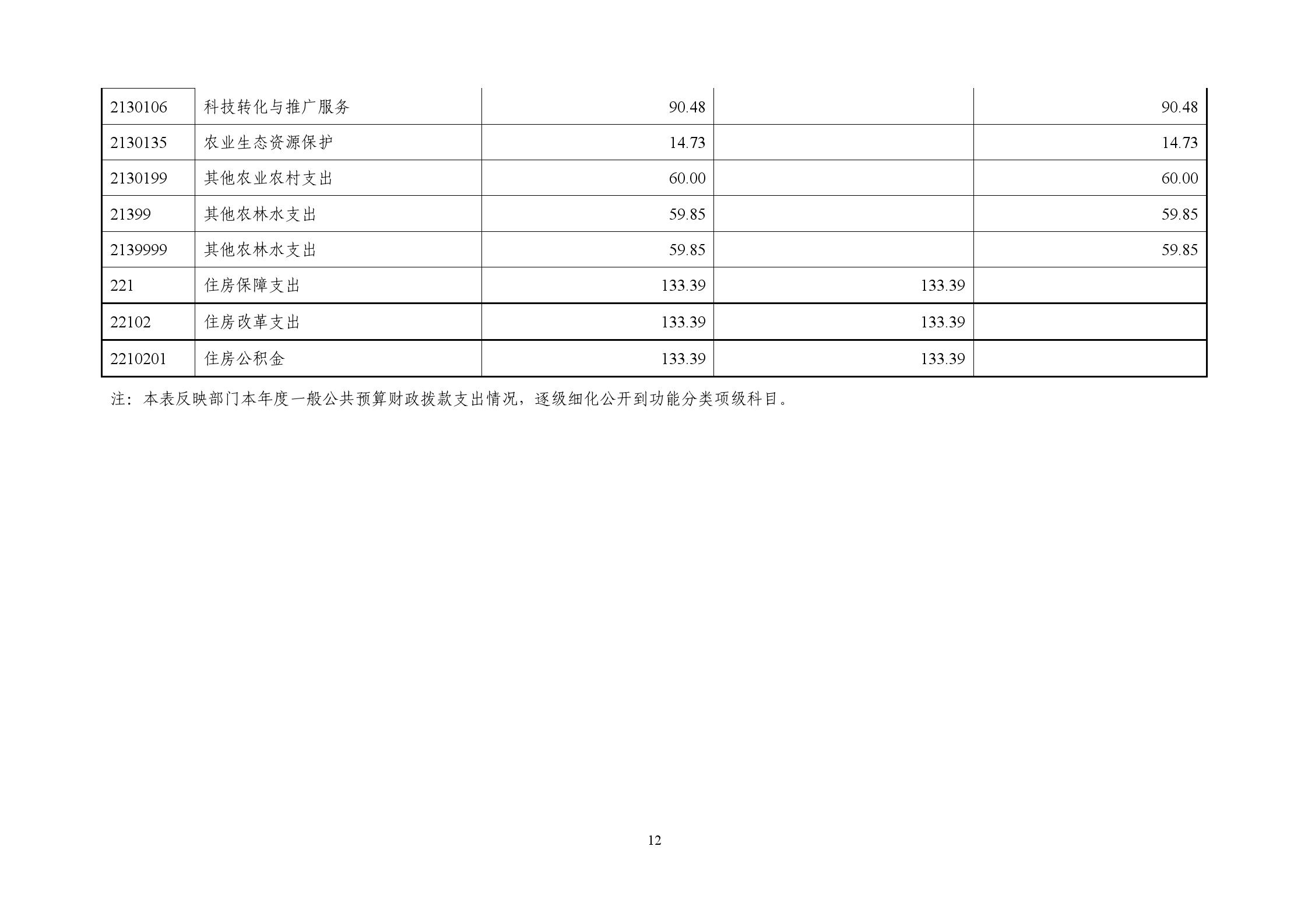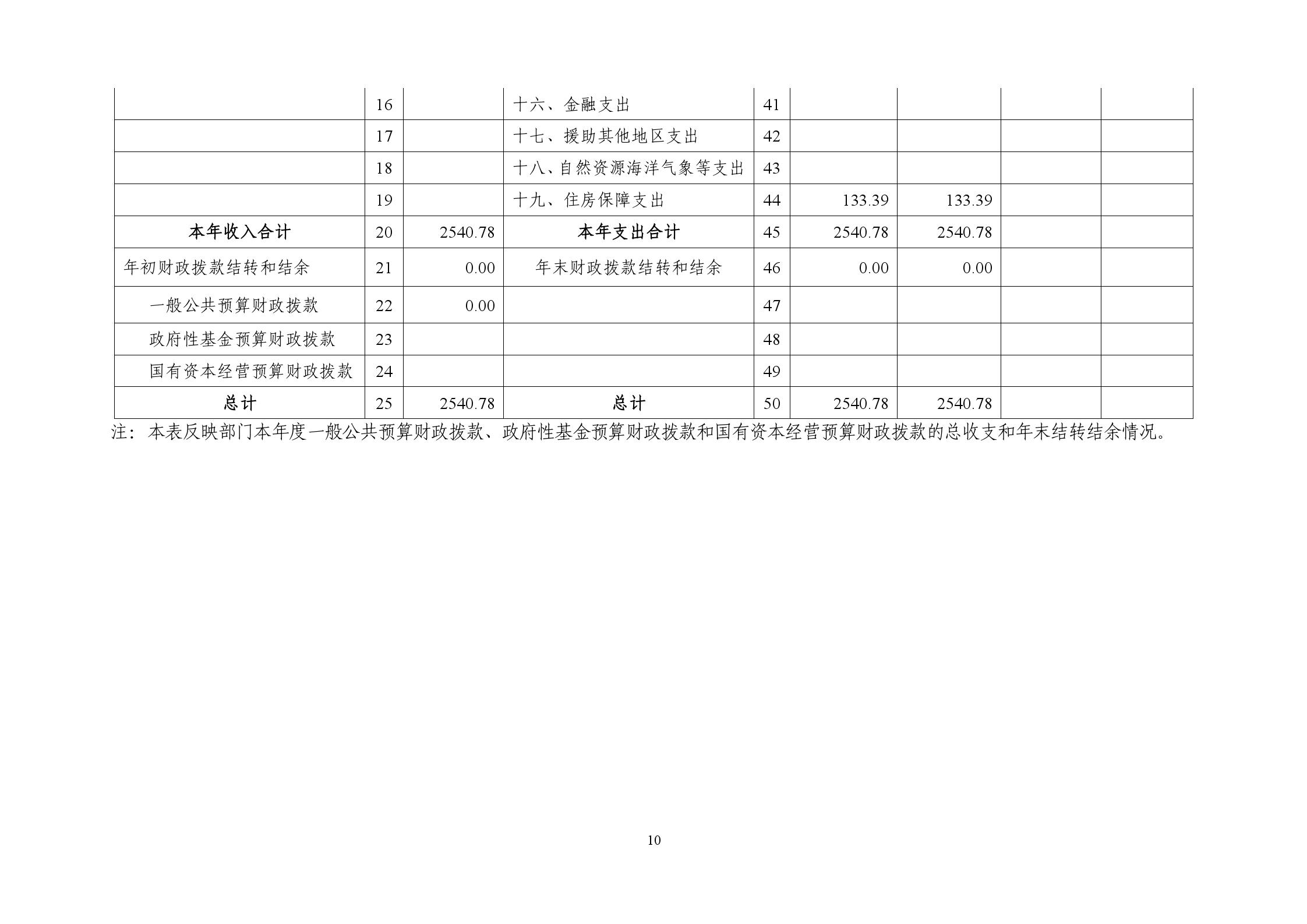 2024年度财政拨款收入总计2540.78万元。与上年相比,减少178.04万元,减少6.55%,主要是因为减少一般公共预算财政拨款收入。财政拨款支出总计2540.78万元。与上年相比,减少178.04万元,降低6.55%,主要是因为减少农林水支出。