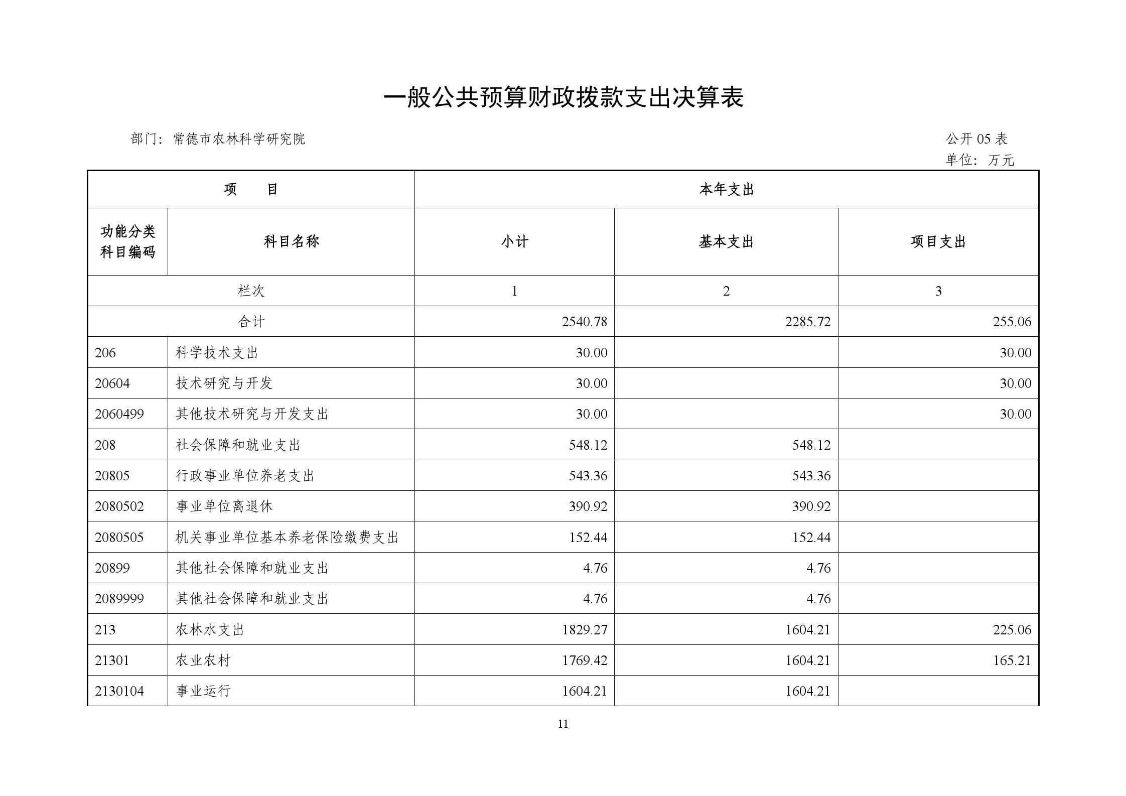 2024年度常德市农林科学研究院部门(单位)整体支出绩效自评报告