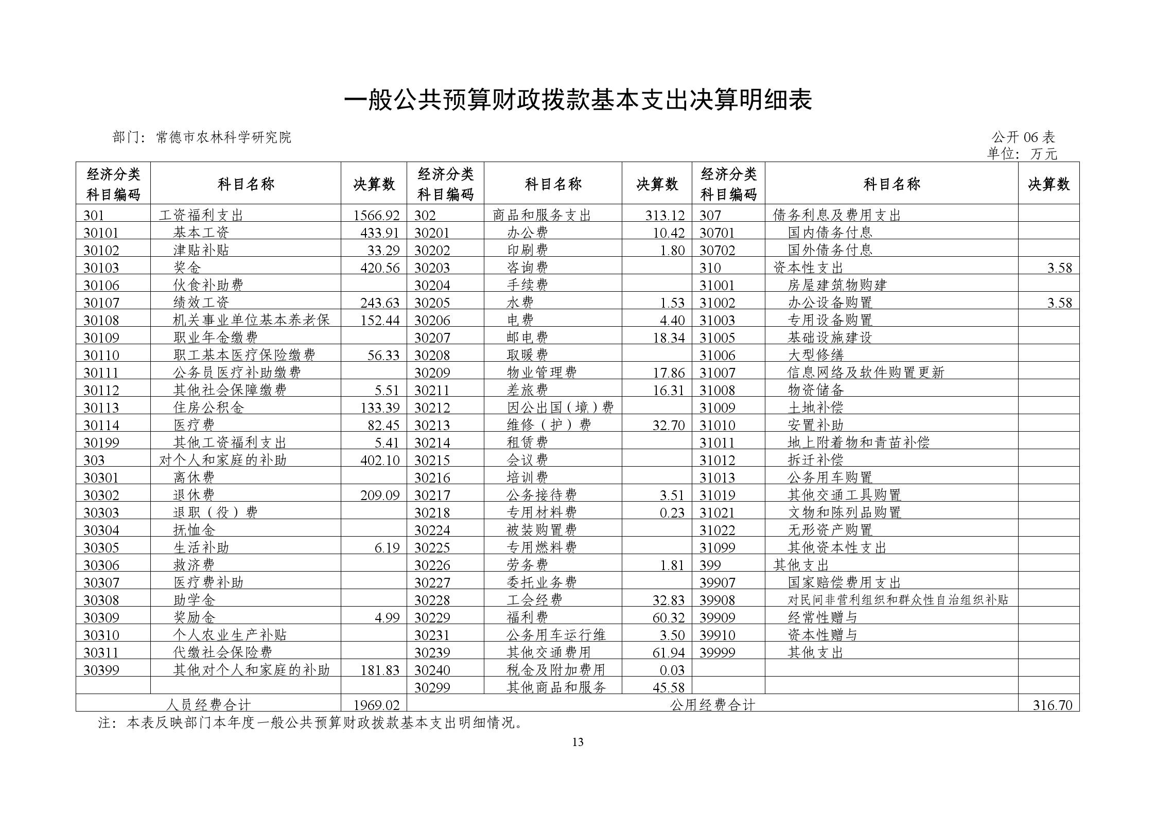 (一)内设机构设置。常德市农林科学研究院单位内设机构包括:本单位内设科室13个,所属事业单位0个。