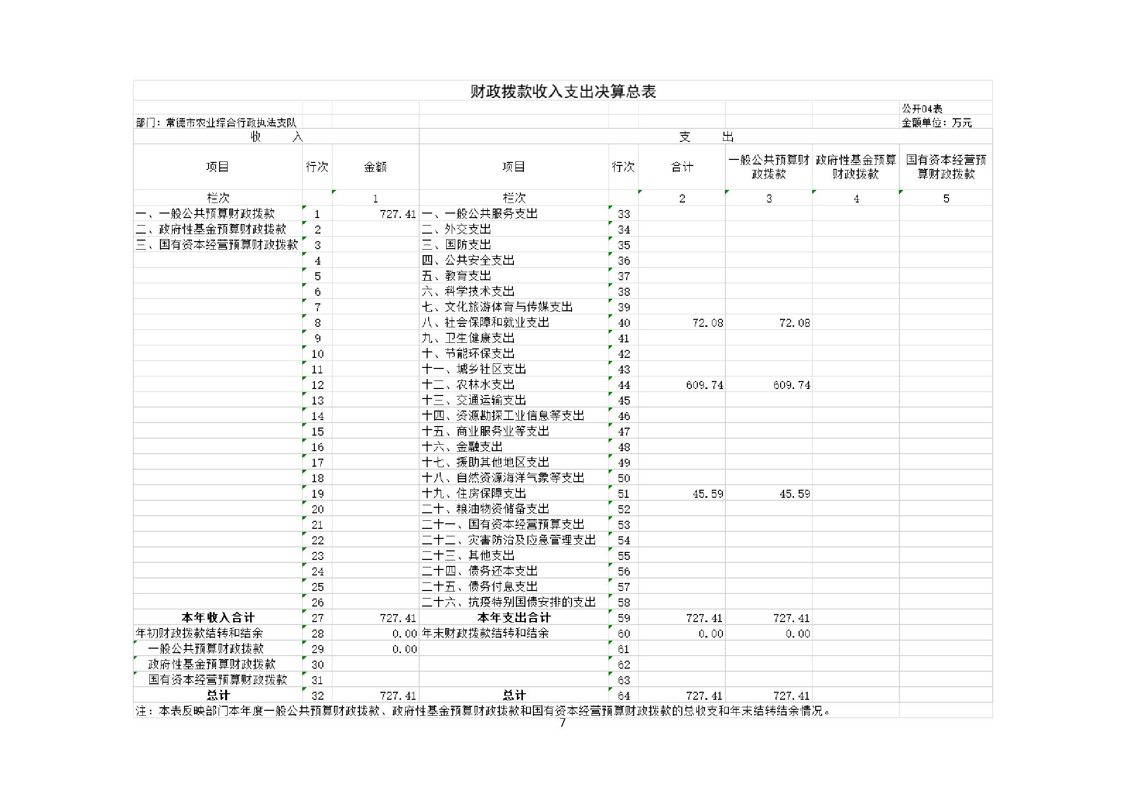 2024年度财政拨款收入总计727.41万元。与上年相比,增加6.16万元,增长0.85%,主要是因为公用经费调整与在职人员工资晋级晋档。财政拨款支出总计727.41万元。与上年相比,增加6.16万元,增长0.85%,主要是因为公用经费调整与在职人员工资晋级晋档。